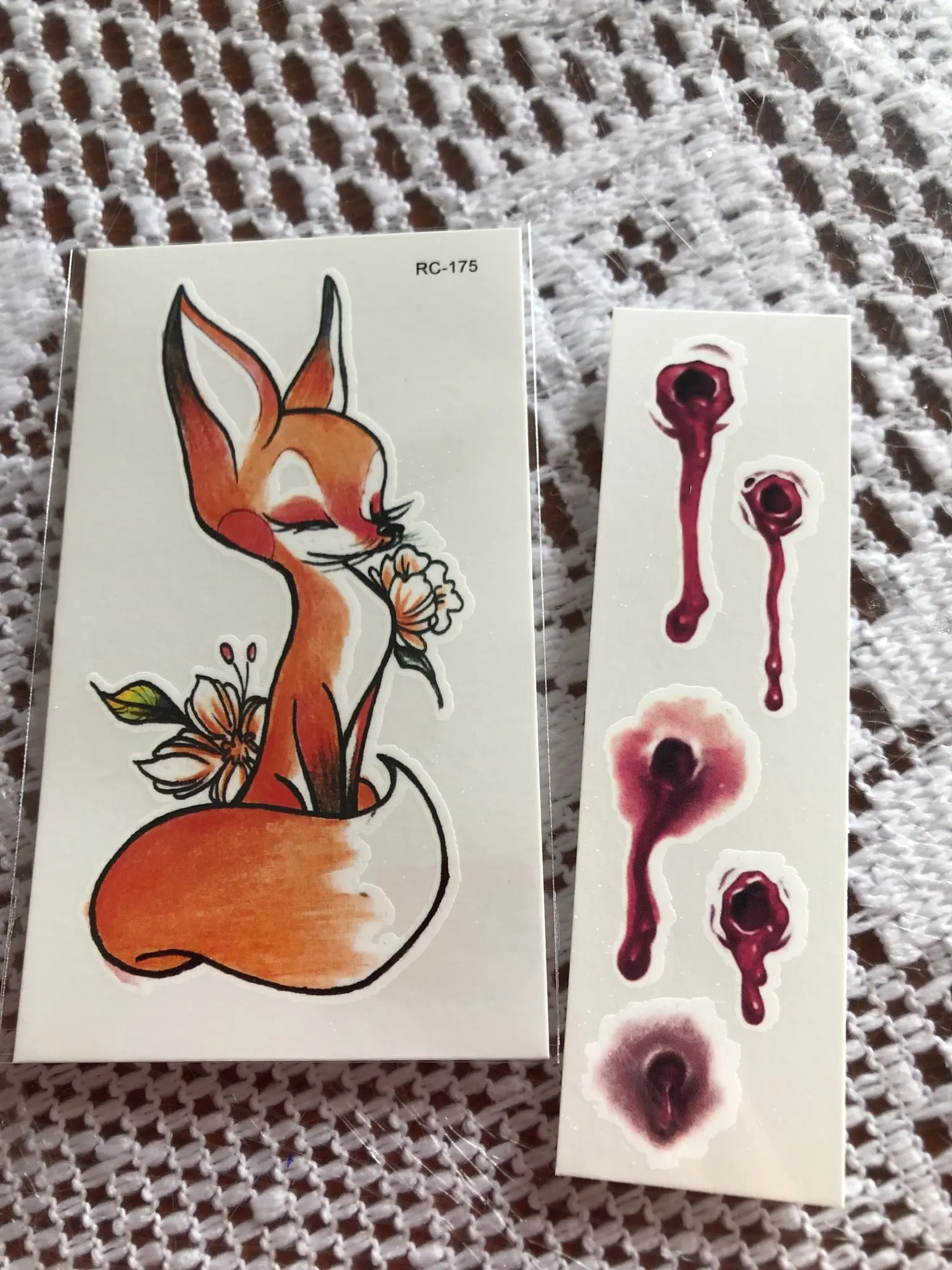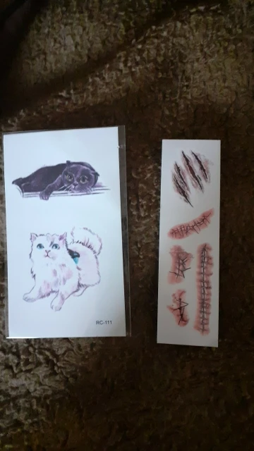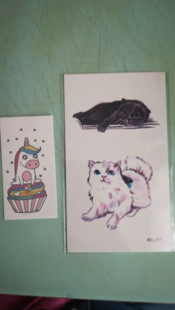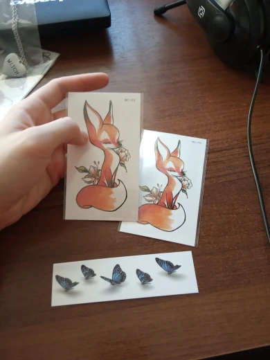Очень понравились татушки, выглядят неимоверно мило. Наносить ещё не пробовала, но очень хочу. Пришли очень быстро, за недели 2. Так же продавец положил в подарок ту миленькую маленькую татушку с единорогом. Спасибо! Буду заказывать еще