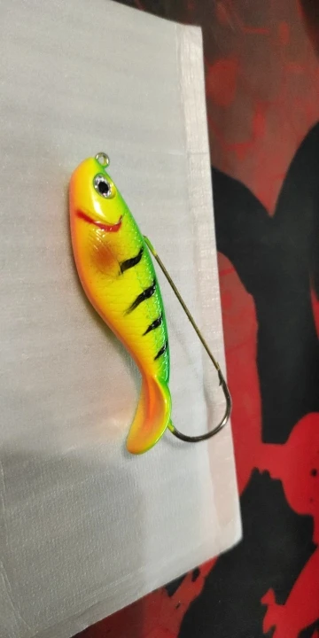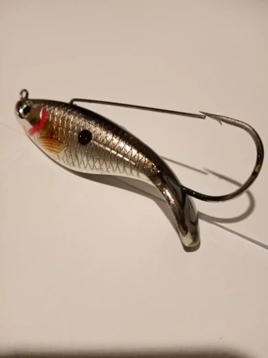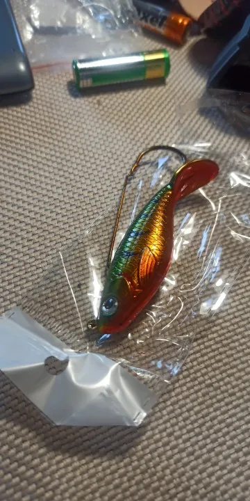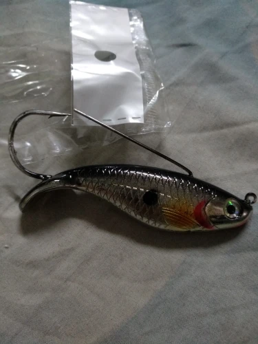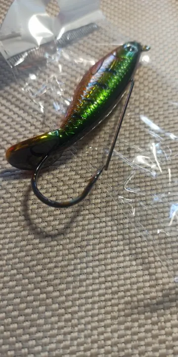 Приманка жесткий пластик. Игра приманки будет только за счёт проводки. Для твичинга подойдёт. Крюк грязный, в пластике. Взял на пробу, но похоже, что пойдёт в мусор.