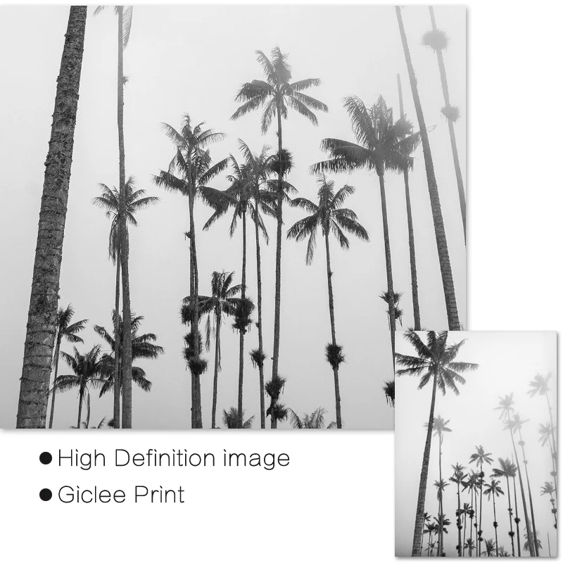 Черно-белые пальмовые плакаты с деревом пляж холст живопись и печат...