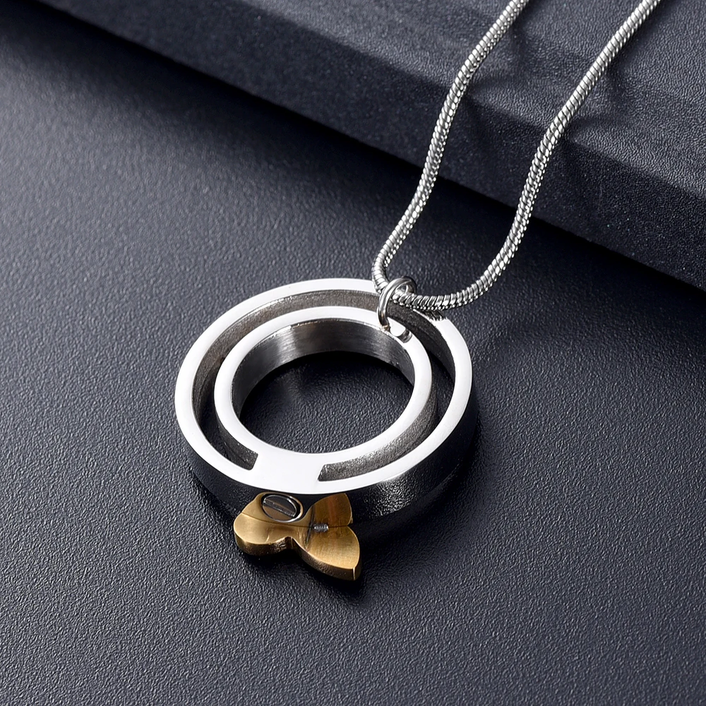 LKJ10742 Золотая Бабочка Очаровательная инкрустация Круг жизни нержавеющая сталь кремация ювелирные изделия погребальные урна сувенир для женщин подарок
