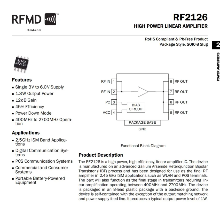 RF2126 400M-2700MHZ широкополосный RF усилитель мощности 2,4 GHZ 1W для WIFI Bluetooth Ham радио усилитель