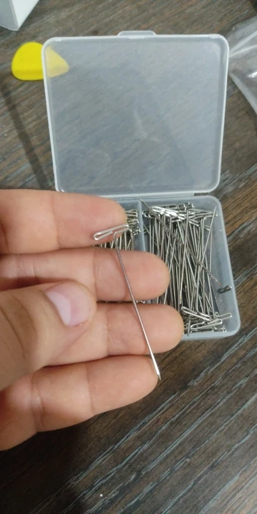 Упаковка удобная, кончики хорошие, шляпки тоже. Но более длинный булавки гнуться без больших усилий.