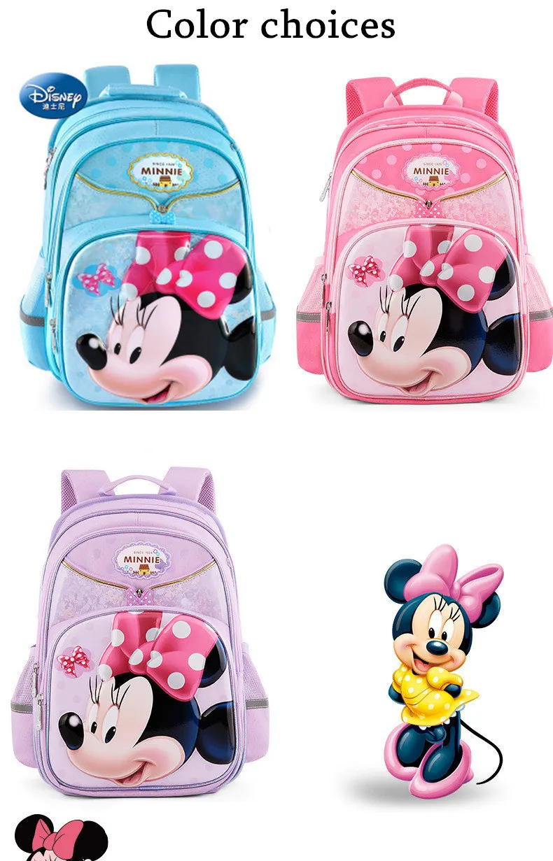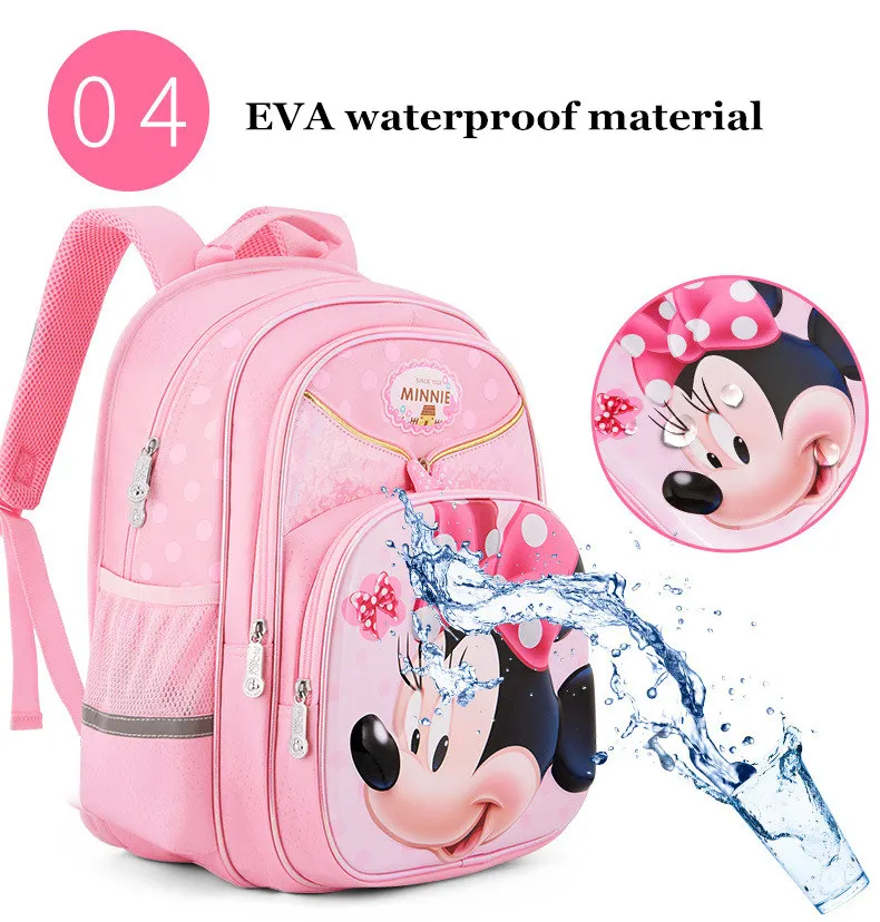 Водонепроницаемый ортопедический рюкзак для девочек, школьный ранец для учебников с 3D рисунком Диснея и Минни, вместительная сумка для начальной школы