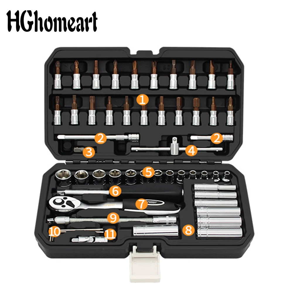 Набор ручных инструментов HGhomeart, инструменты для ремонта автомобилей, набор торцевых гаечных ключей с трещоткой, набор инструментов для домашнего ремонта