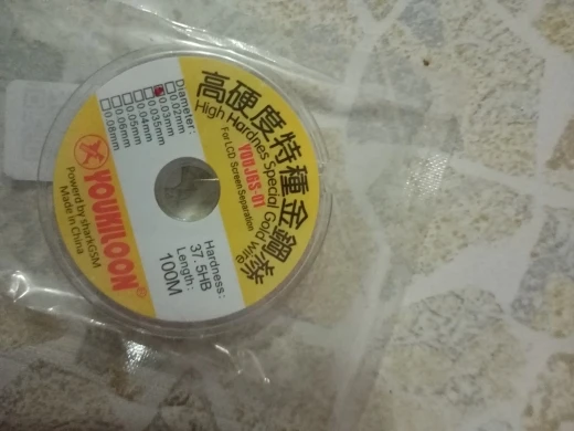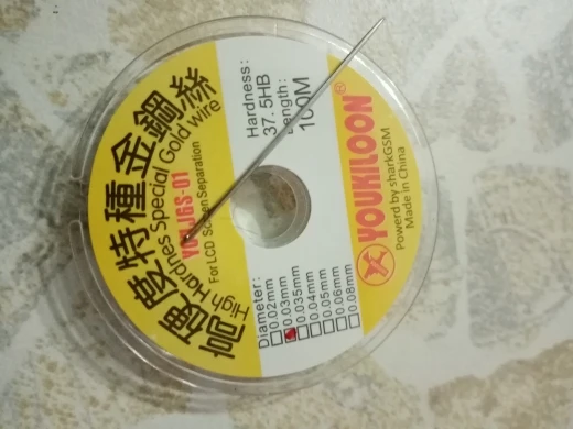 Очень тонкая проволока! Заказ получил, заказывал в китайский новый год, продавец отправил только через две недели после оплаты товара, не проверял в деле, думаю будет супер, до этого делил модули гитарой струной 0,2 а эта проволока даже 0,03