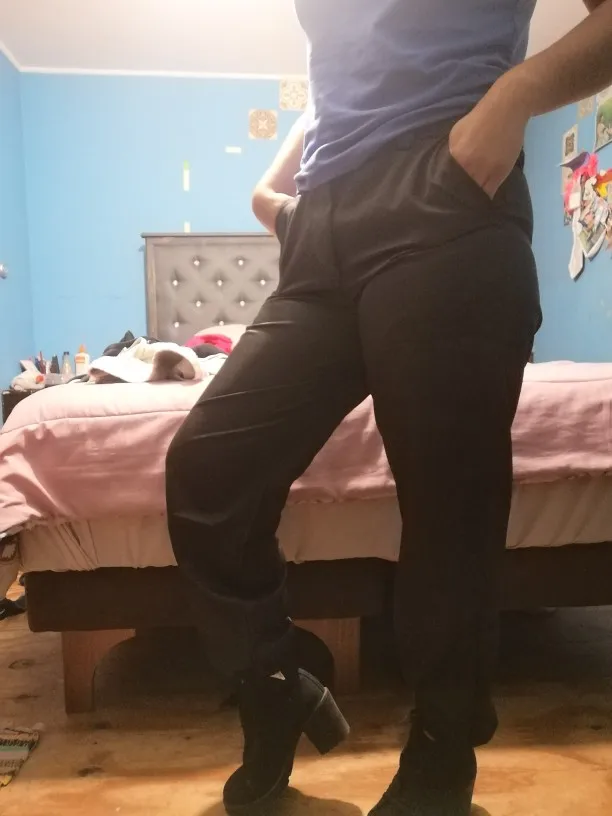 Штаны действительно красивые, но слишком узкие для бедер и ягодиц, потому что у меня действительно тонкое тело, но большие бедра приятно на ощупь, и мой парень сказал, что я хорошо в них выгляжу