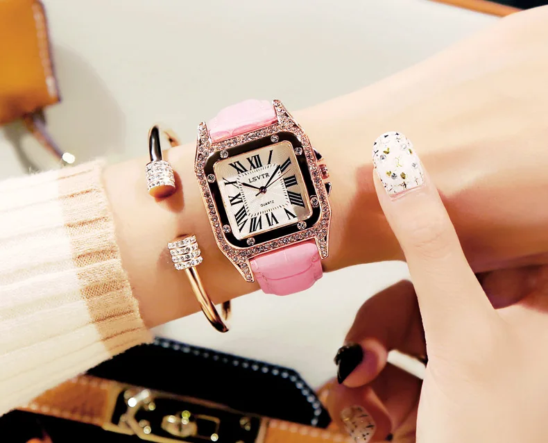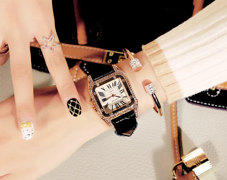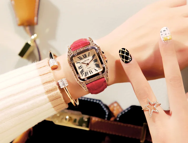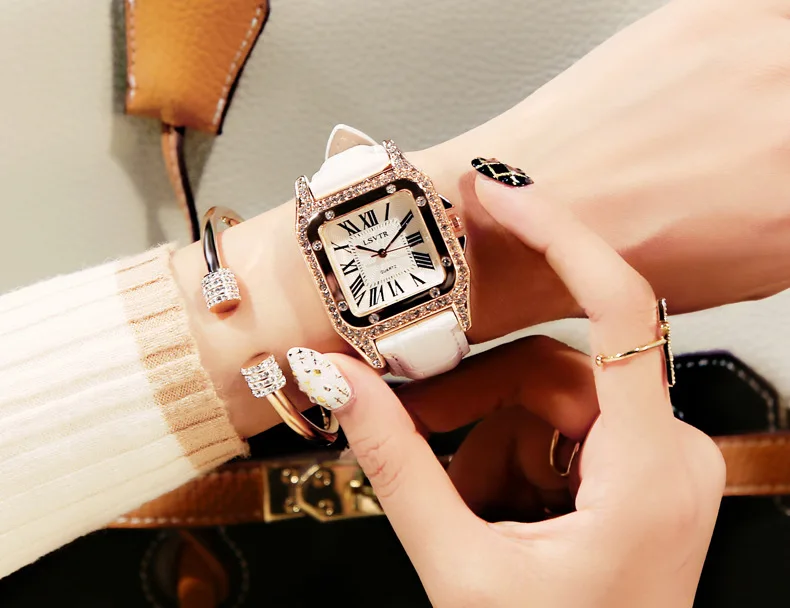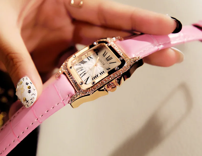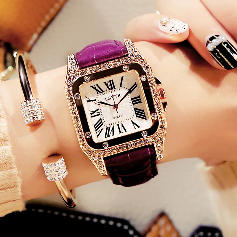 Женские квадратные наручные часы с бриллиантами для женского платья, кварцевые часы с кристаллами, кожаные часы с ремешком-браслетом женские часы Reloj Mujer