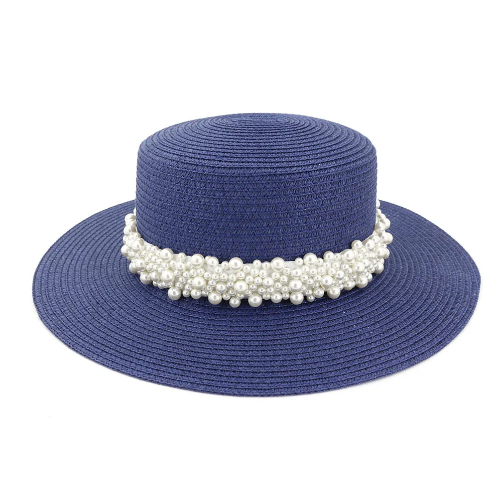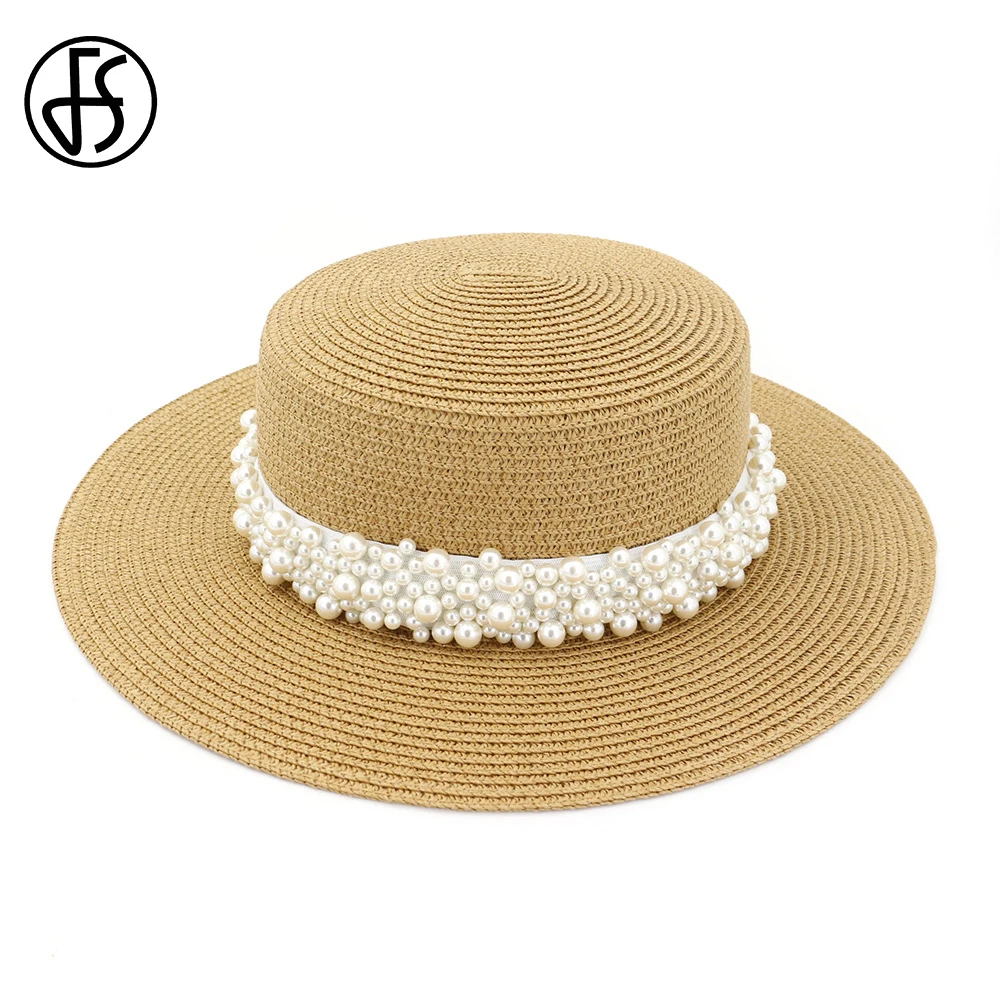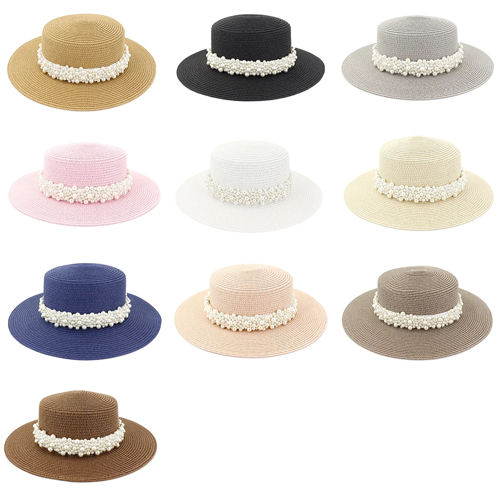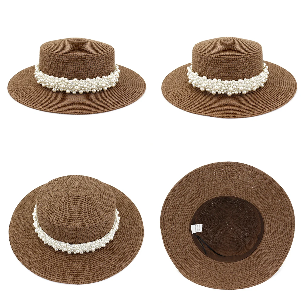 FS 2021, летние шляпы для женщин, Пляжная соломенная шляпа для путешествий с жемчужинами, шляпа от солнца цвета хаки, розовая, с широкими полями, модная, плоская, джазовая Кепка для церкви