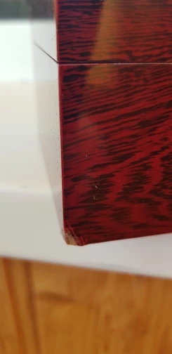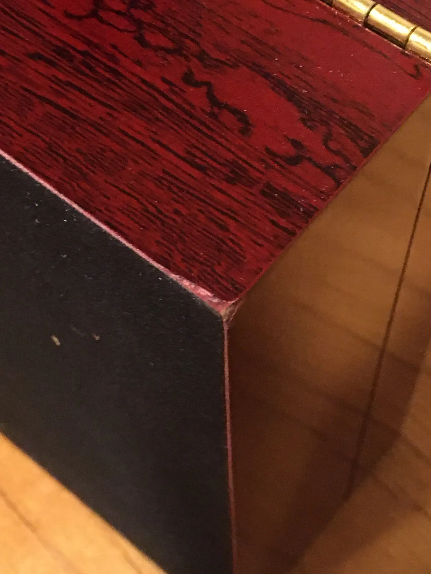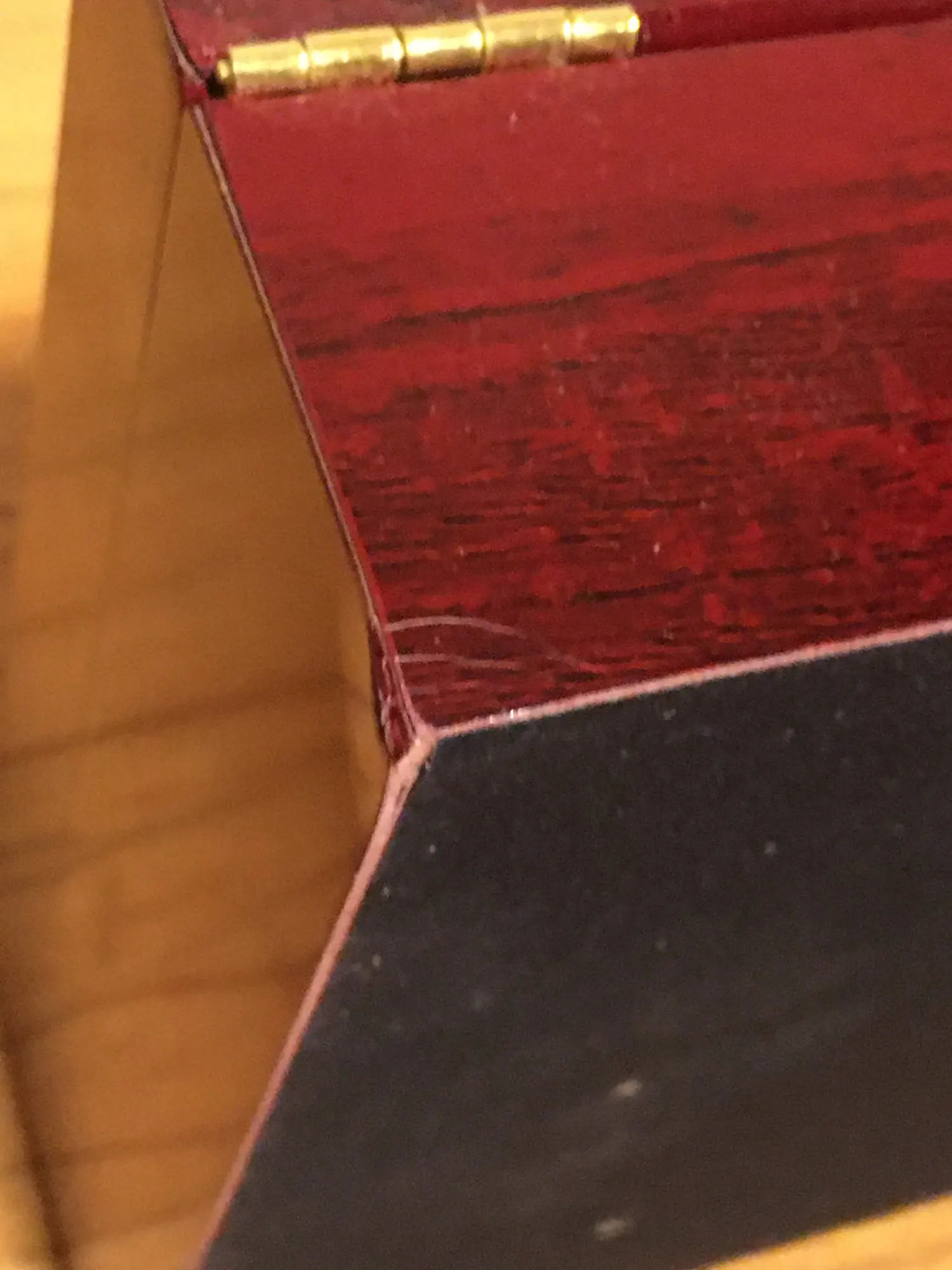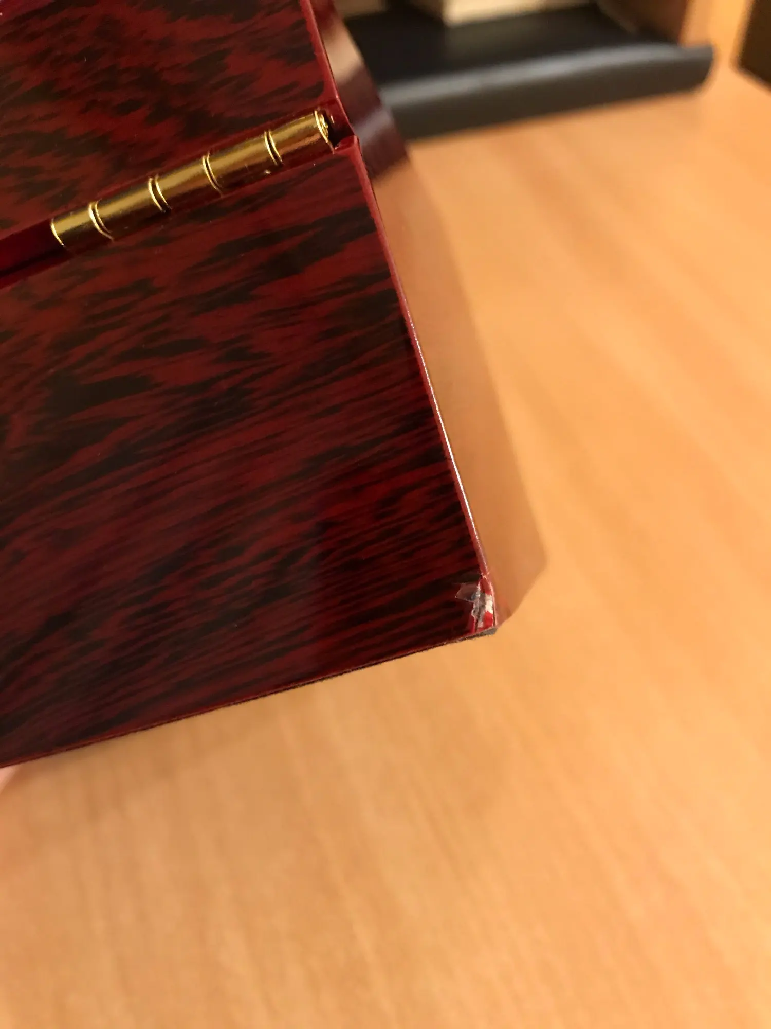 Шкатулка не плохая, выглядит как на фото. Размер немного больше, чем я ожидала. Это не дерево, но сойдет для удобства организации хранения дома. Доставка была очень долгой (около 4 месяцев), но продавец был на связи и сообщал о статусе заказа. Упаковано очень надежно, в полиэтилен, в коробку и пенопласт.Так что если есть сколы, то скорее всего таким товар отправил продавец. На шкатулке есть небольшой скол, но отправлять его обратно из-за этого это слишком долго :))