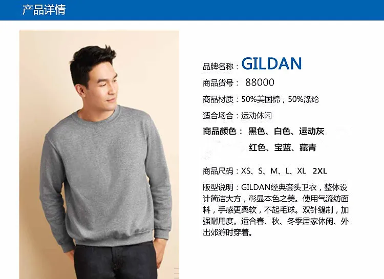 GILDAN, 88000, мужские флисовые однотонные хлопковые свитшоты, спортивные толстовки для активного отдыха, мужские свитшоты с круглым вырезом