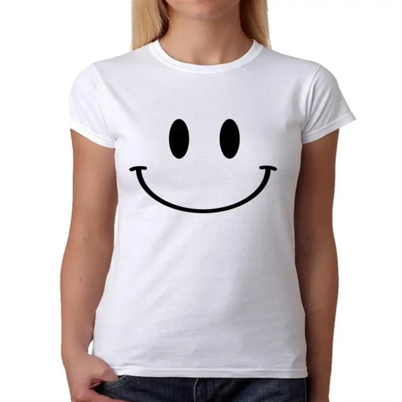 Женская хлопковая футболка, с надписью Smile Face Happy, с коротким рукавом, большого размера