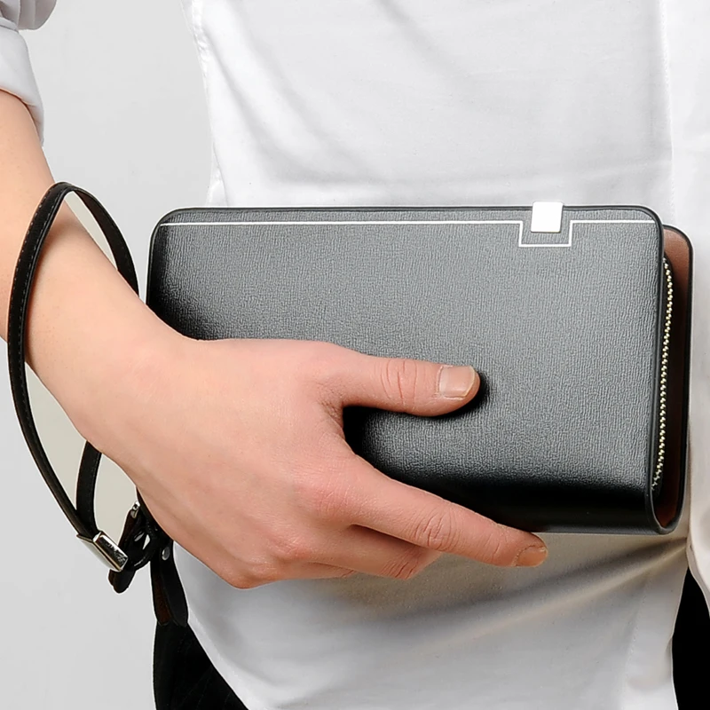 Роскошный брендовый мужской клатч KANGAROO, кожаный Длинный кошелек с двойной молнией, деловой кошелек с ремешком на руку, мужская повседневная удобная сумка, черный, коричневый