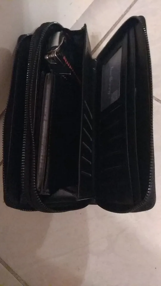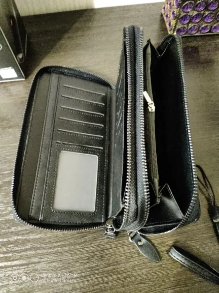 кошелёк прикольный два кармана с визитками и простой для бумажных купюр и мелочи упаковка обычная внутри кошелька ремешочик для него материал хороший ну очень мягкий не твёрдый прошита нитками но есть погрешности по пнешнему как на картинке шло долго.