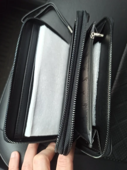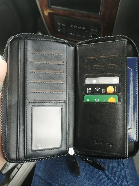 Не кожа конечно, но и так сойдёт, в описании написано, что это кожзам. А так это большой кошелёк, особо много документов и ключей не засунешь.