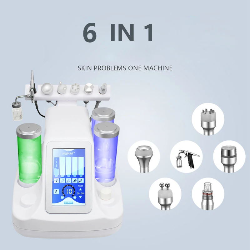 Новинка 7 в 1 Вакуумная очистка лица Гидра вода для лица кислородная струя пилинг машина Массаж Уход за кожей био светильник RF Beauty Device