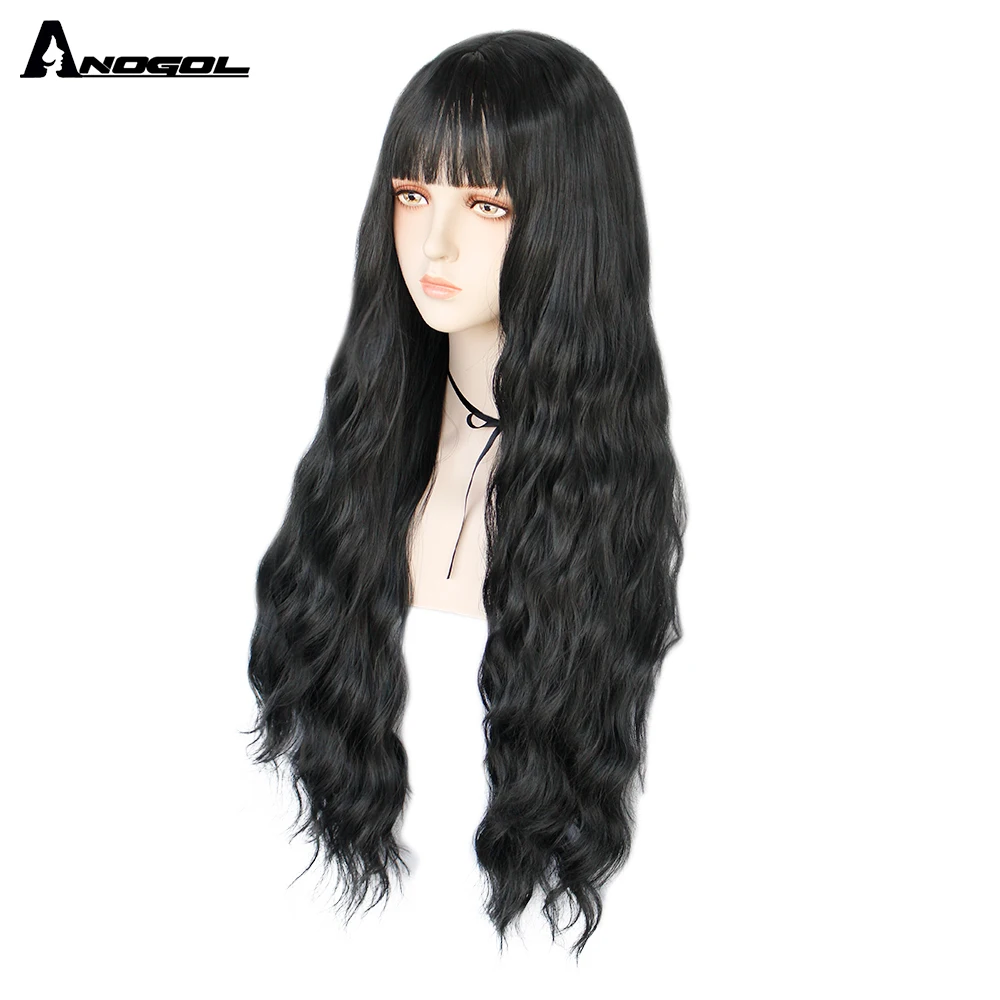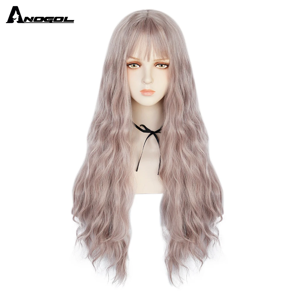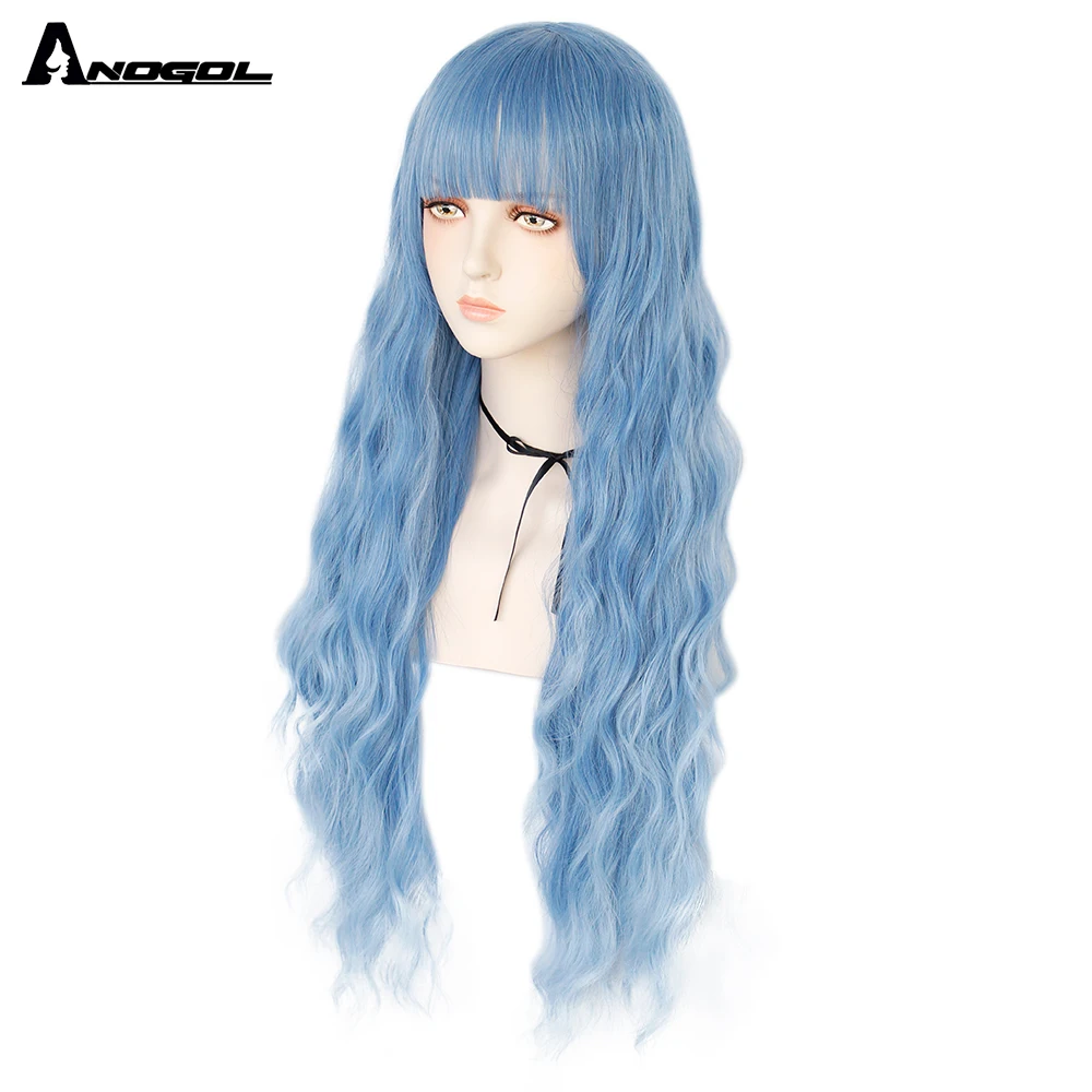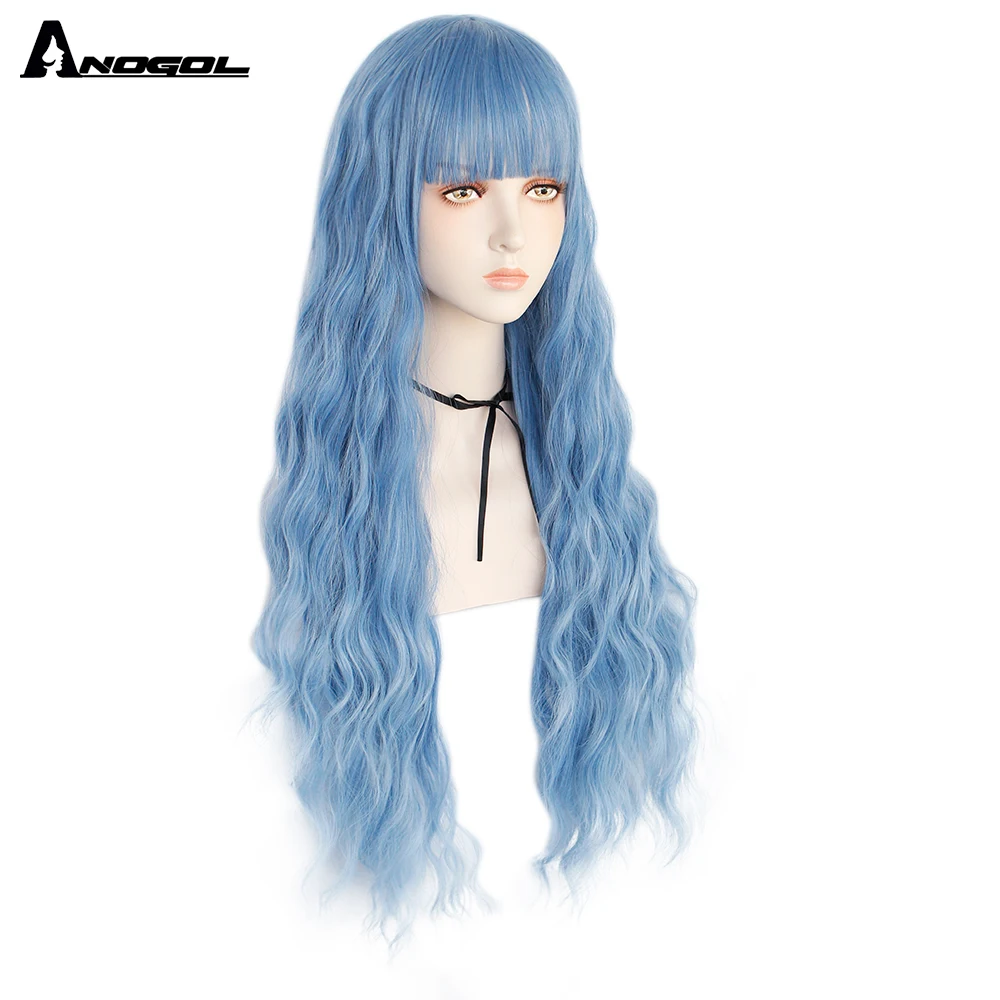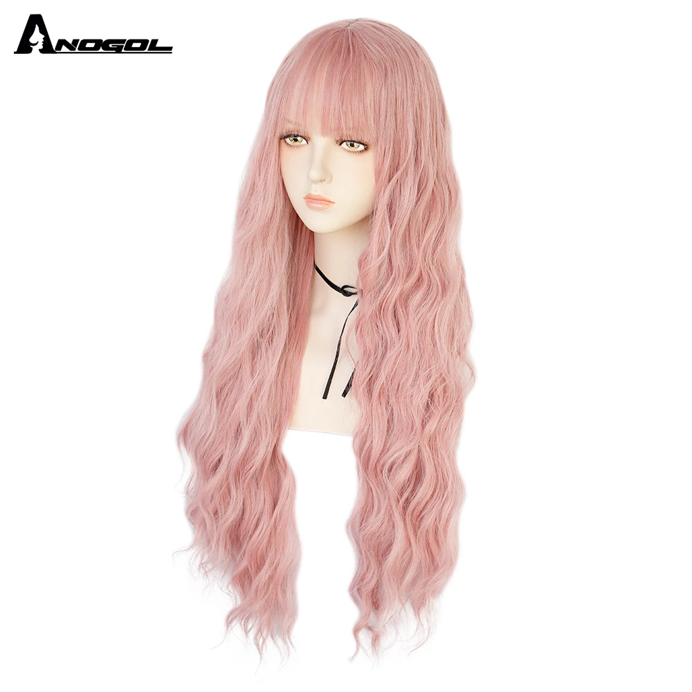 Аногол длинные волнистые волосы парики розовый Золотой Блонд черный синий белый синтетический парик с плоской челкой бахрома для женщин Лолита косплей О доставке: