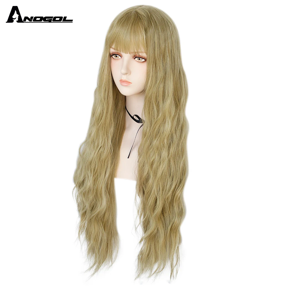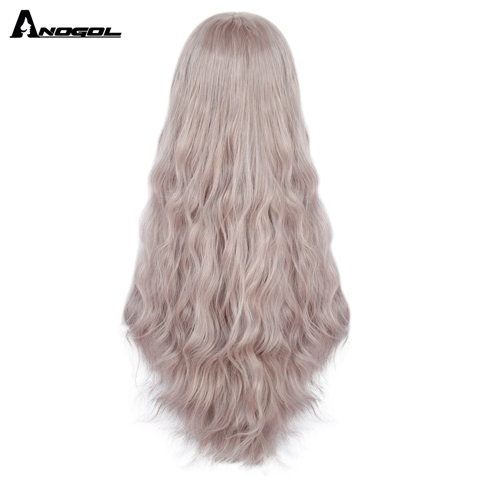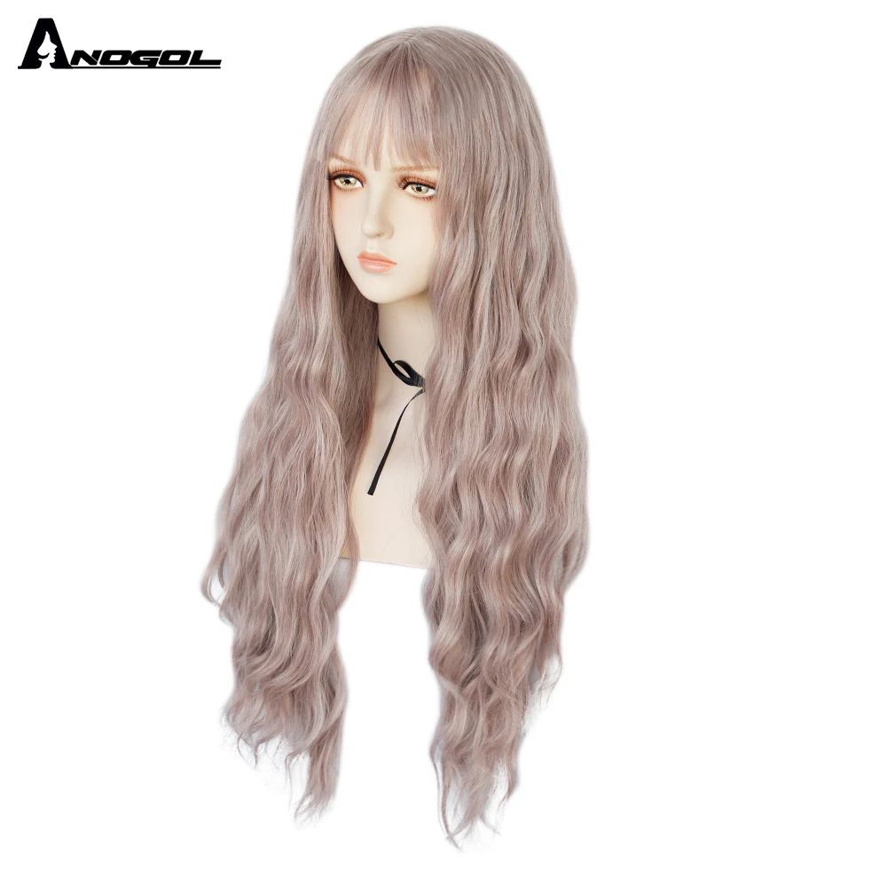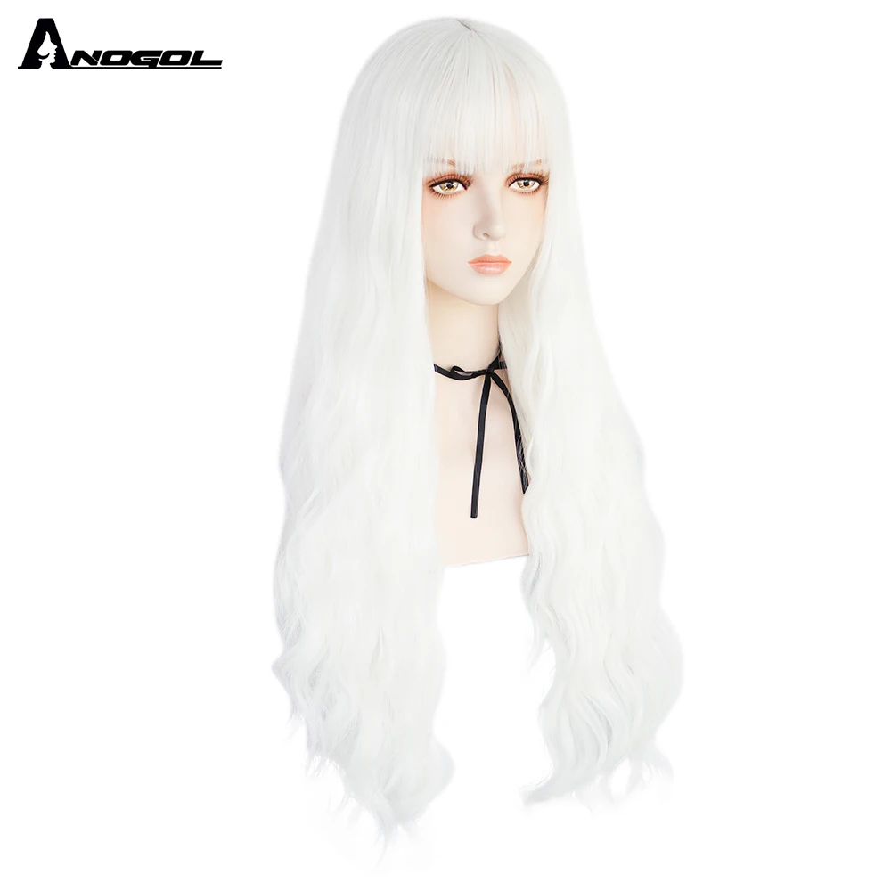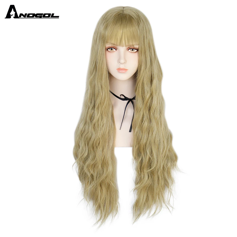Аногол длинные волнистые волосы парики розовый Золотой Блонд черный синий белый синтетический парик с плоской челкой бахрома для женщин Лолита косплей О доставке: