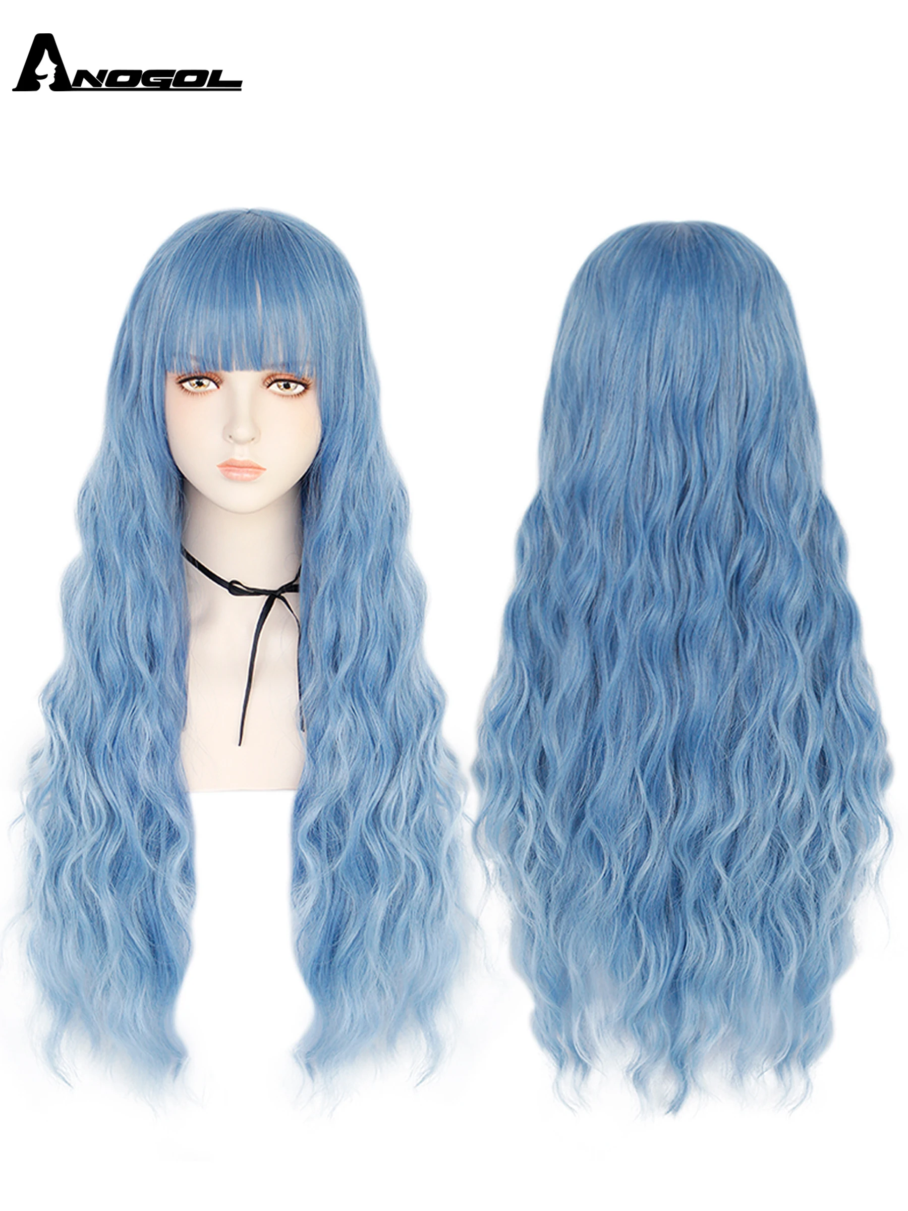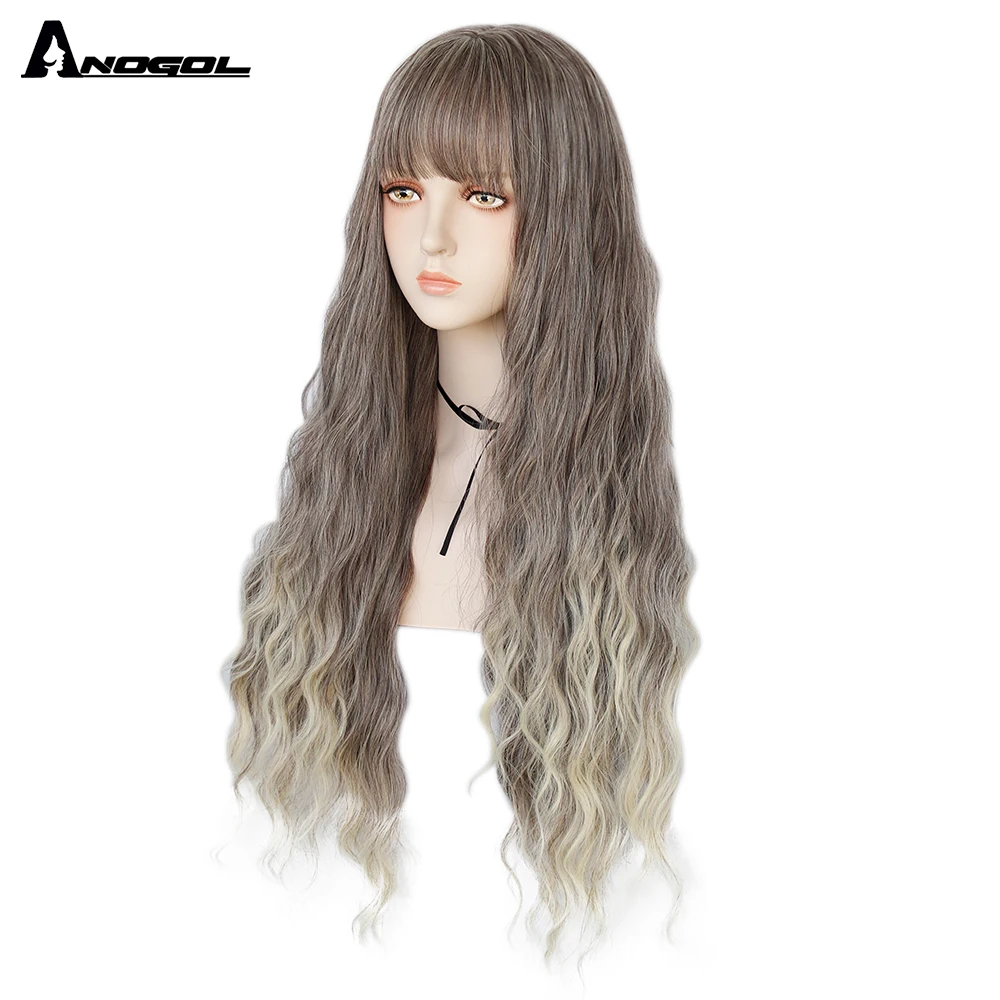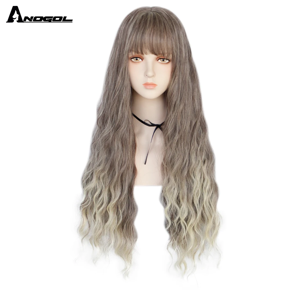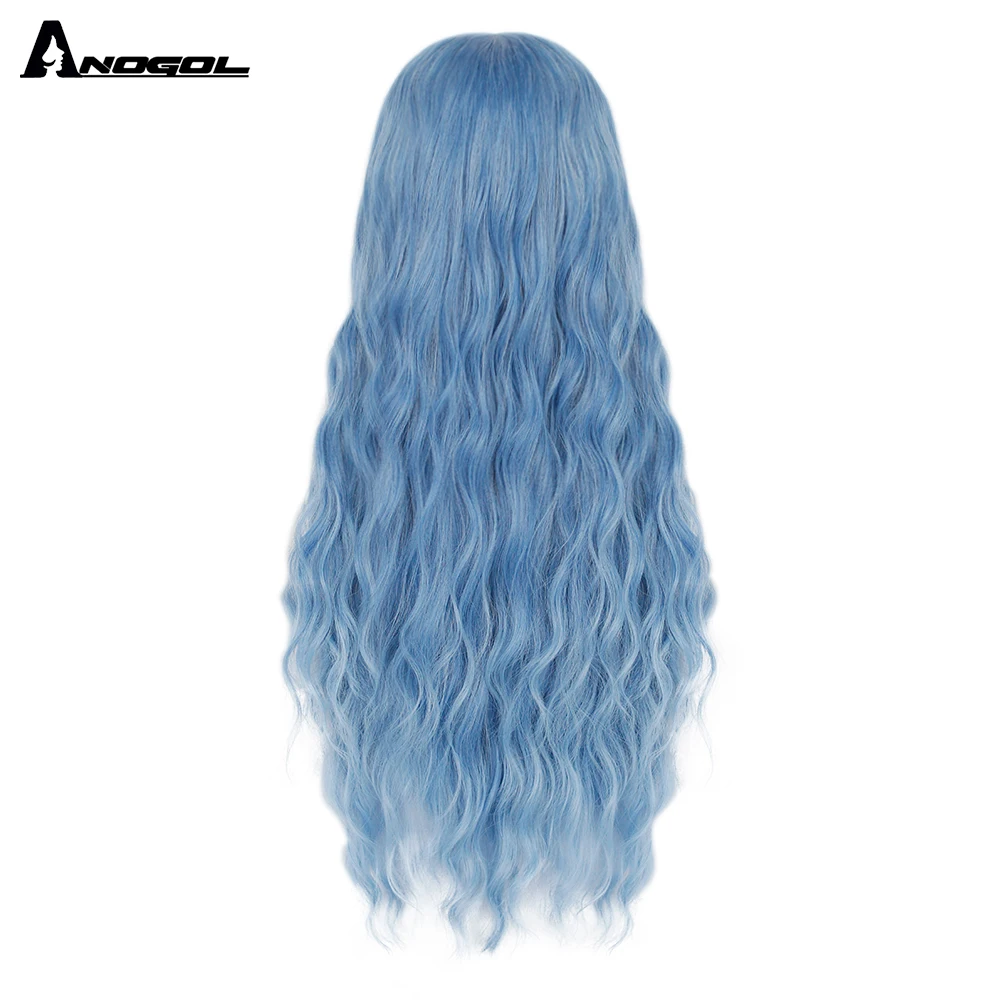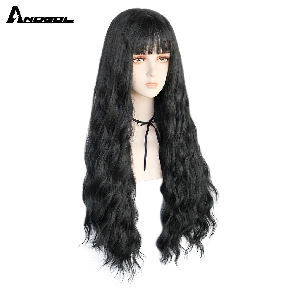 Аногол длинные волнистые волосы парики розовый Золотой Блонд черный синий белый синтетический парик с плоской челкой бахрома для женщин Лолита косплей О доставке: