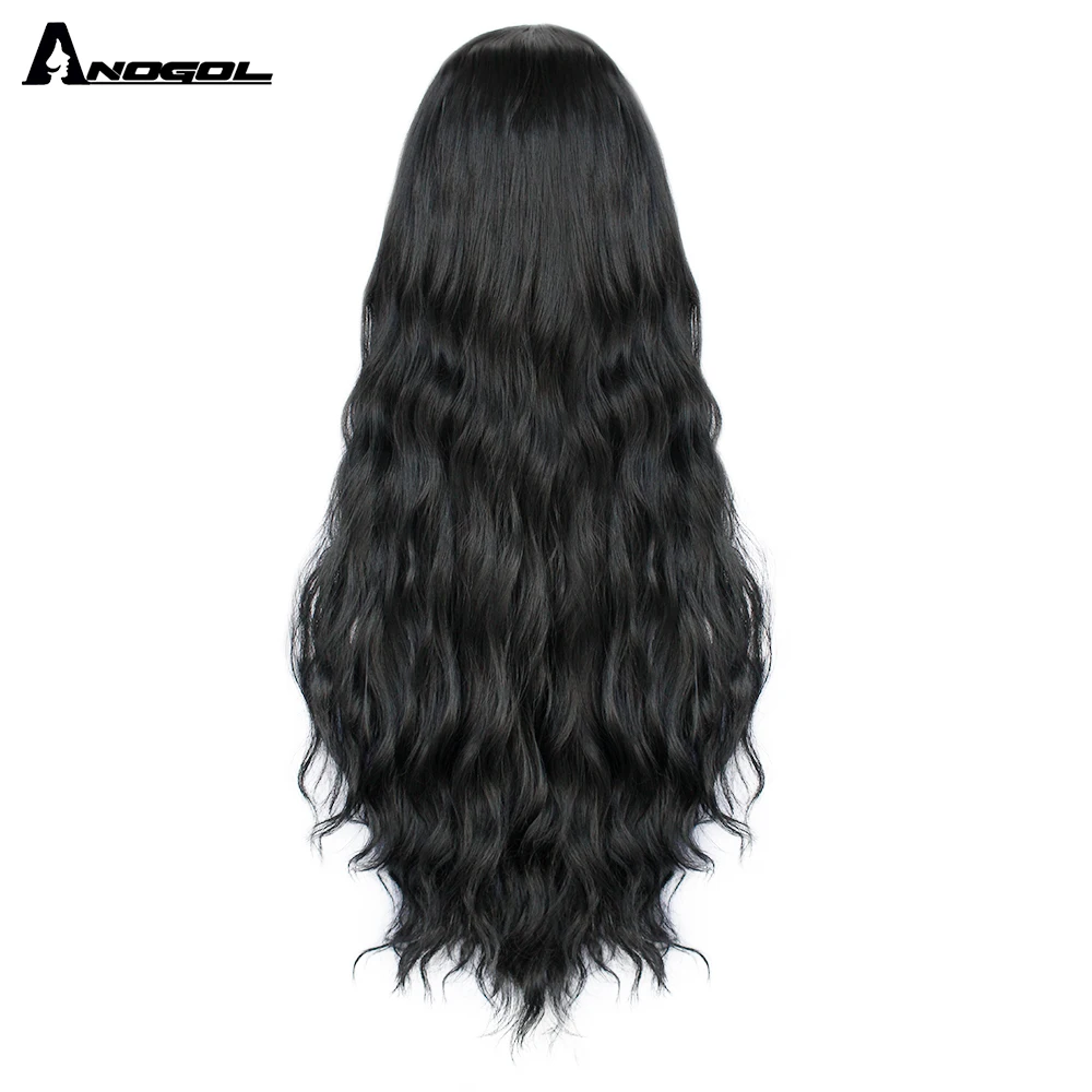 Женский синтетический парик ANOGOL, черный парик с глубокой волной ...