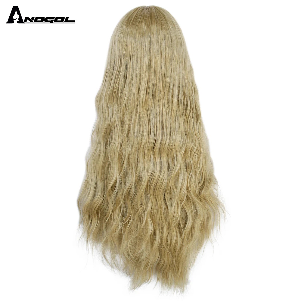 Аногол розовый длинный глубокий волнистый Золотой Блонд черные волосы парики синий синтетический парик с плоской челкой бахрома для женщин