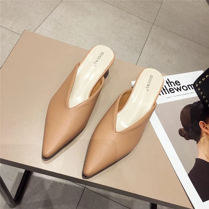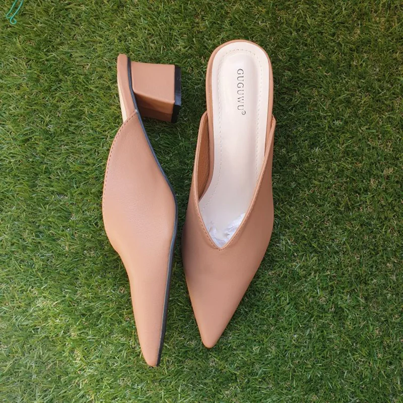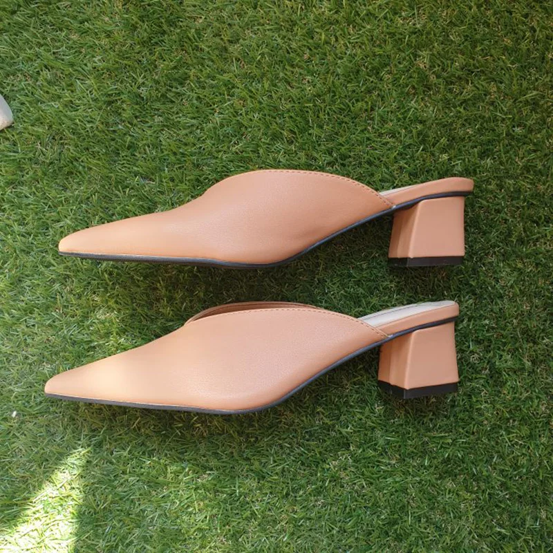 Женские шлепанцы без задника, бежевые шлепанцы телесного цвета, на квадратном каблуке 5 см, пляжные шлепанцы, лето 2021