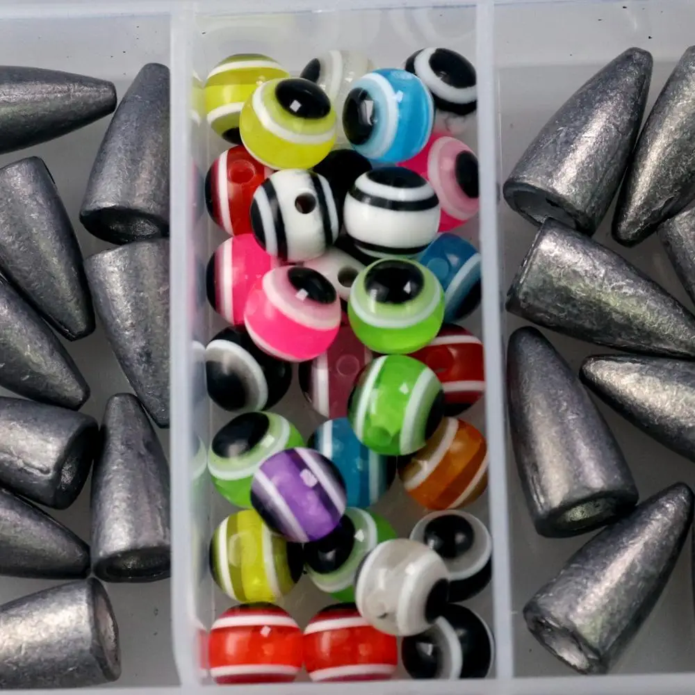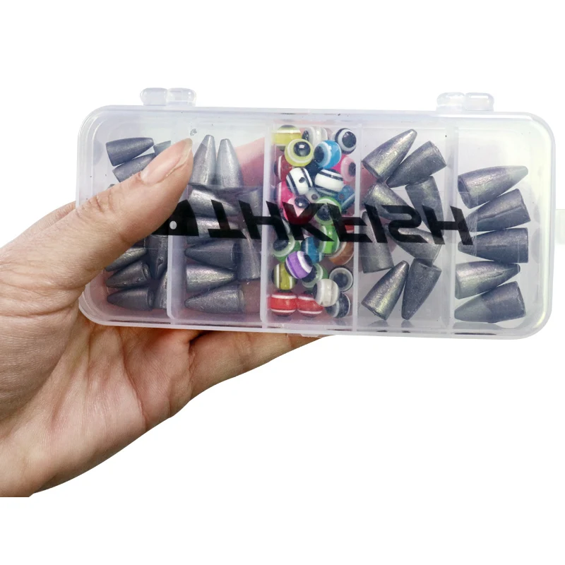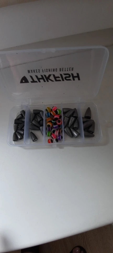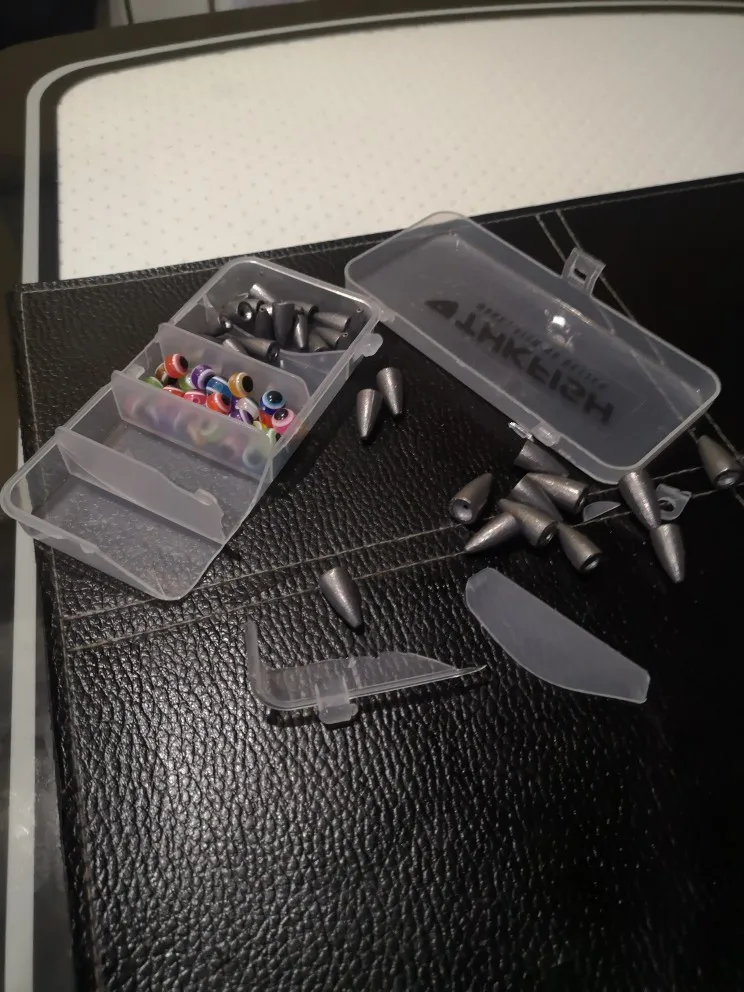 дошло быстро, меньше месяца. всё согласно описания. груза, к сожалению, не маркированы по весу. выходные отверстия грузов для профилактики надо будет "зализать" иголкой от заусениц и острых углов. глазки пластиковые с большим отверстием. как раз, чтобы одеться на узел крючка. пластиковая коробка удобна для пользования набором.