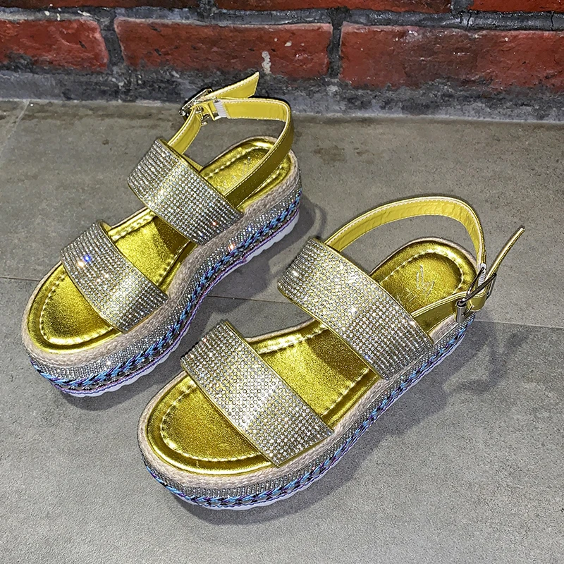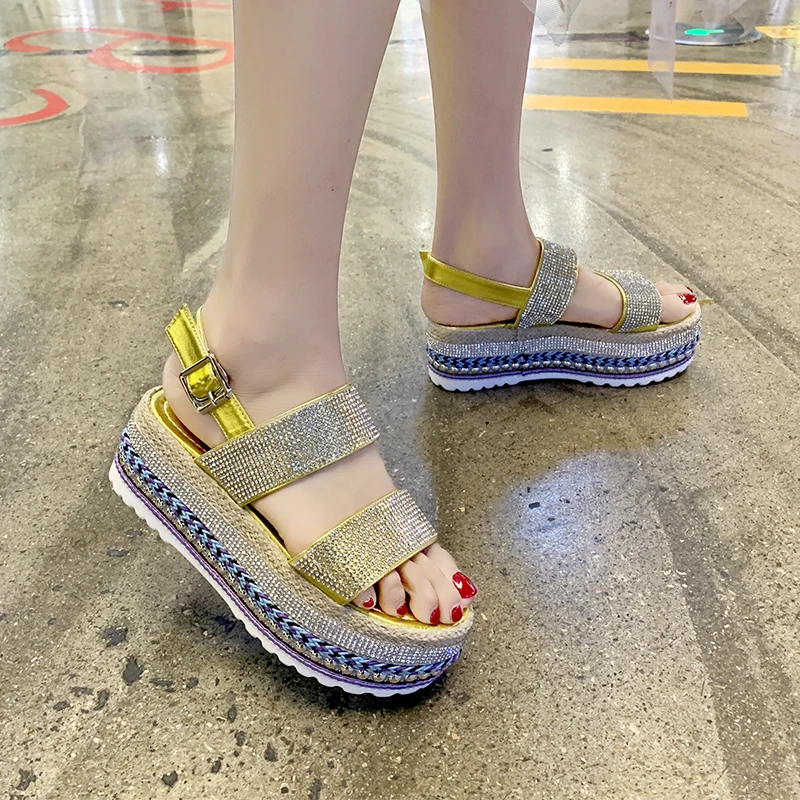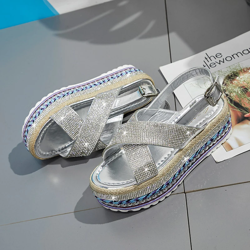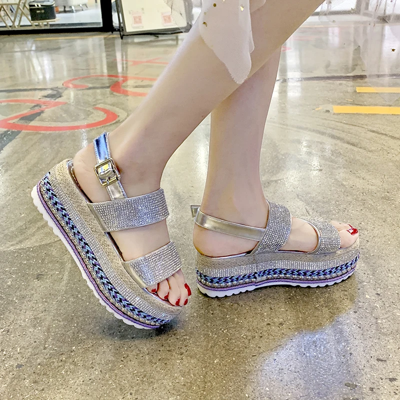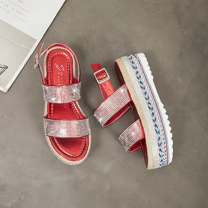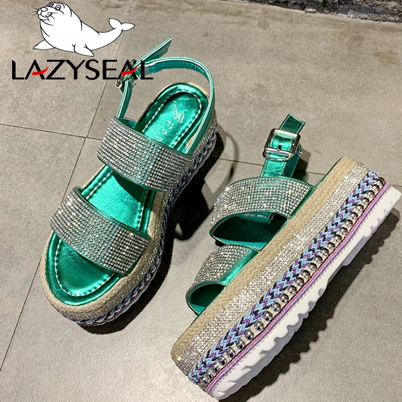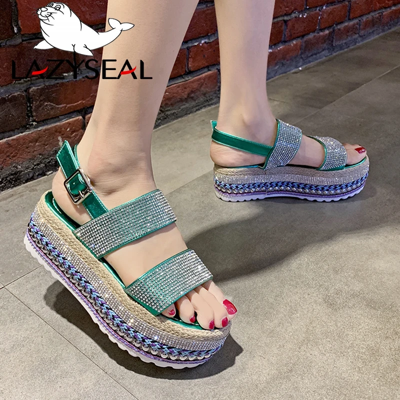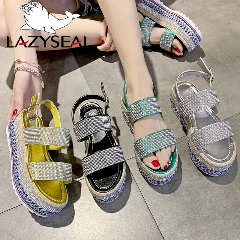Сандалии LazySeal женские на платформе, пляжные босоножки с пряжками, плоская подошва, блестящая обувь, модель Лето 2020