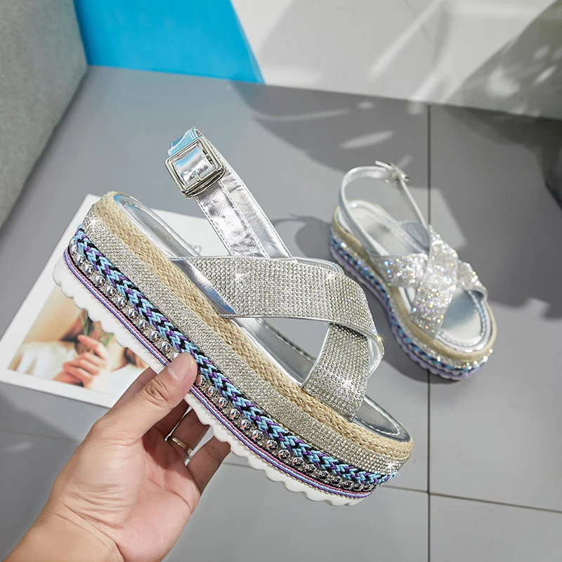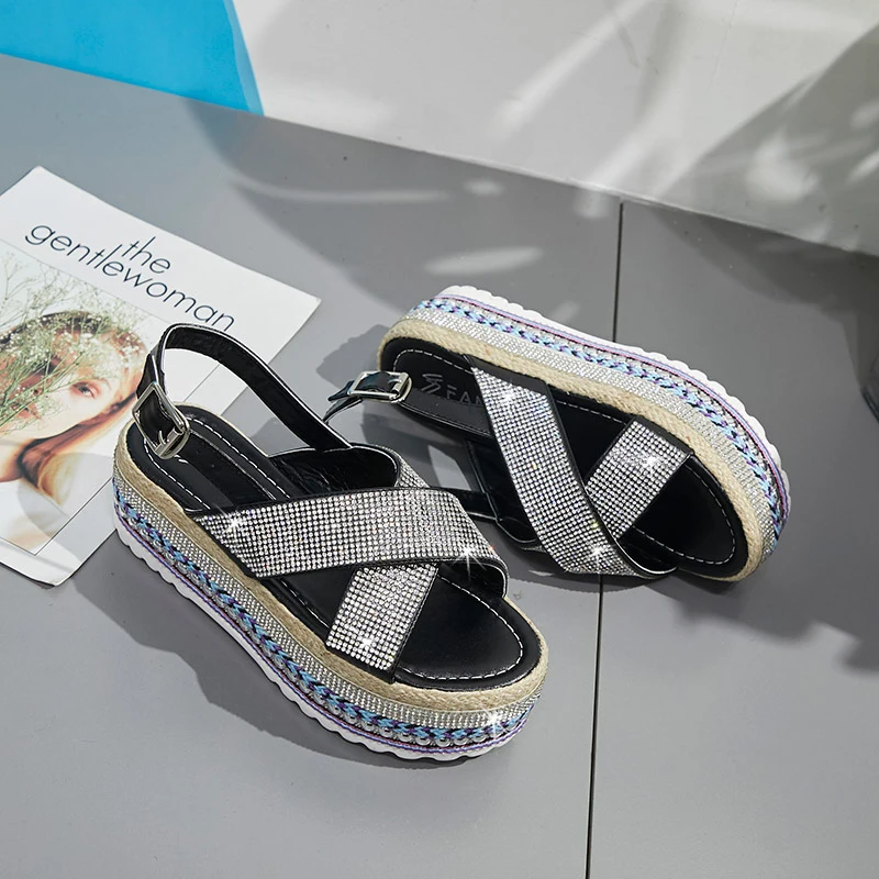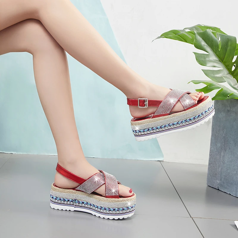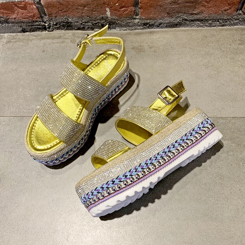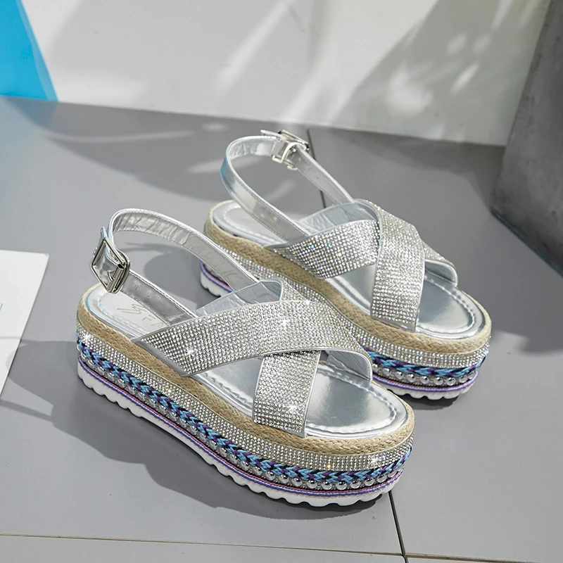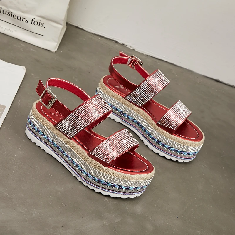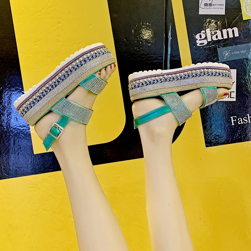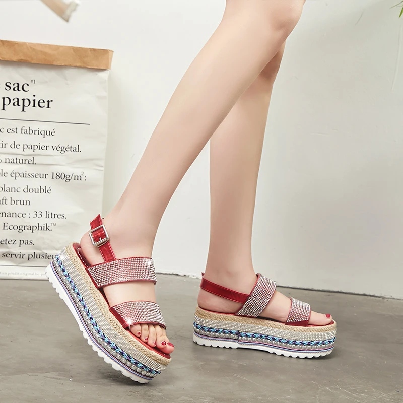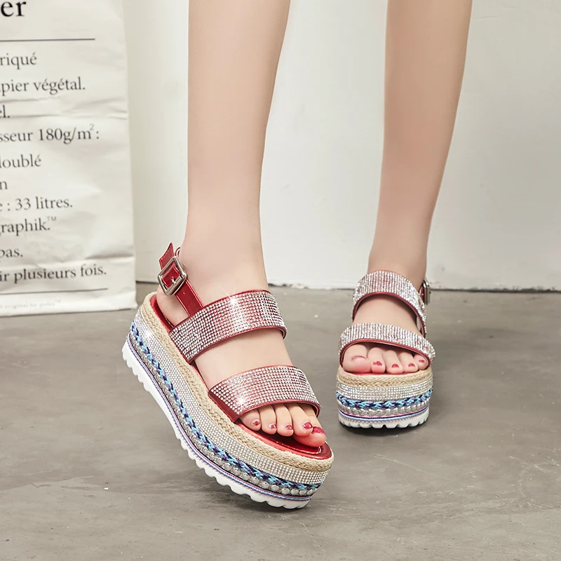 Сандалии LazySeal женские на платформе, пляжные босоножки с пряжками, плоская подошва, блестящая обувь, модель Лето 2020