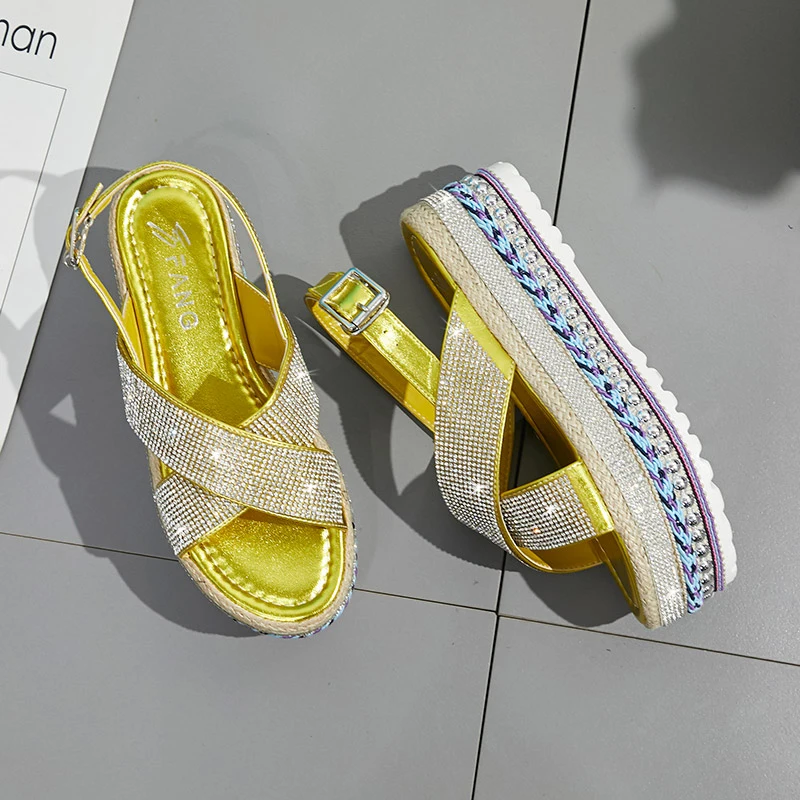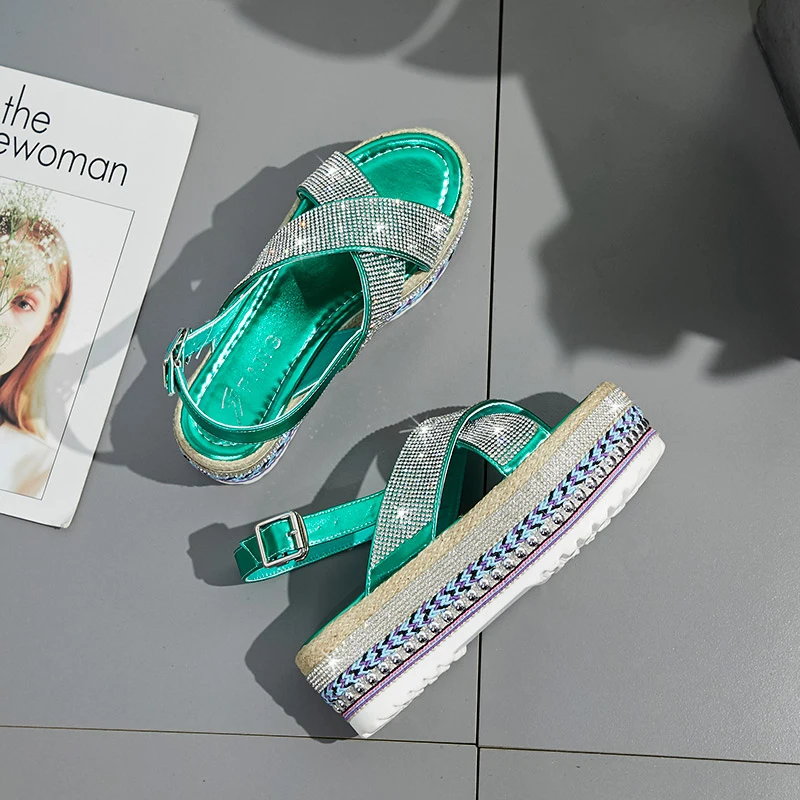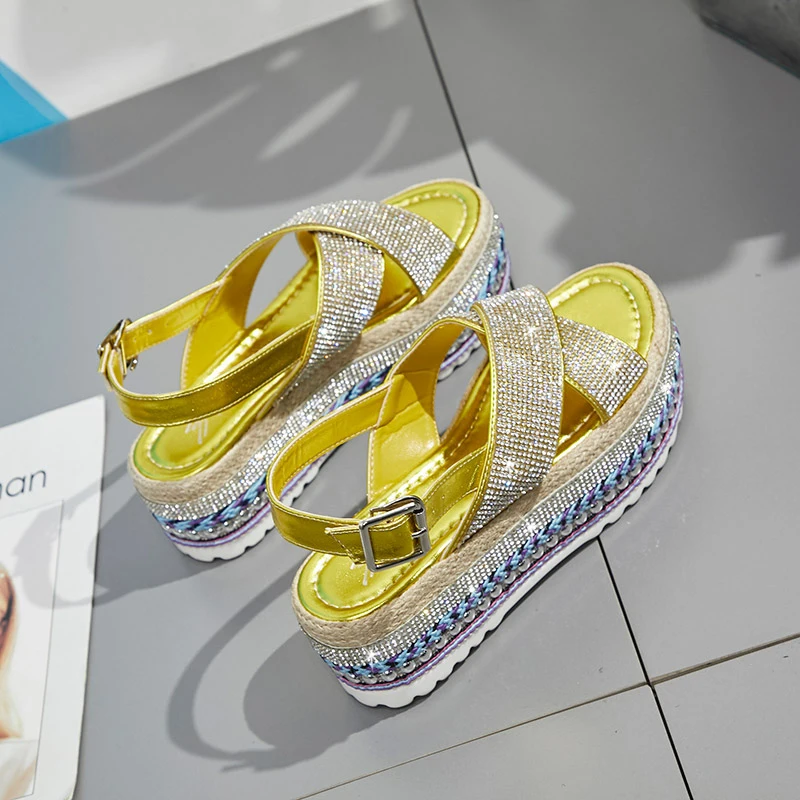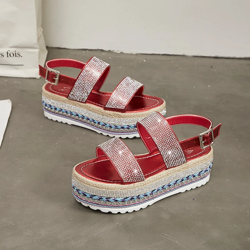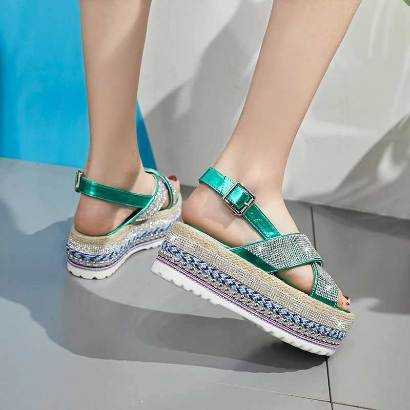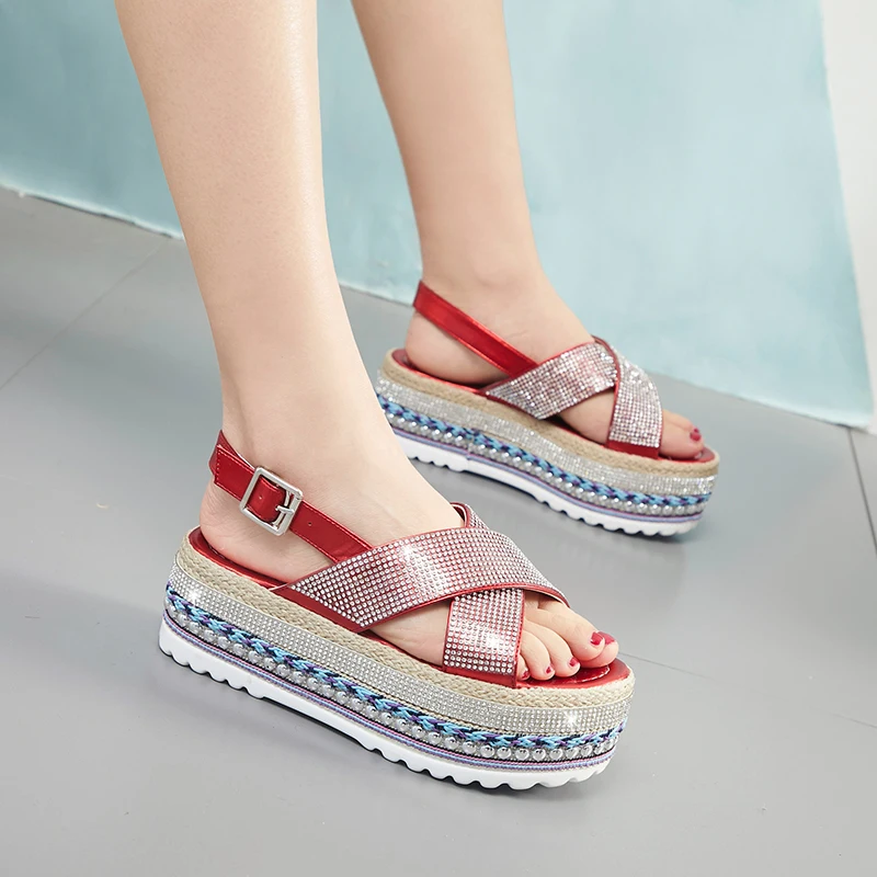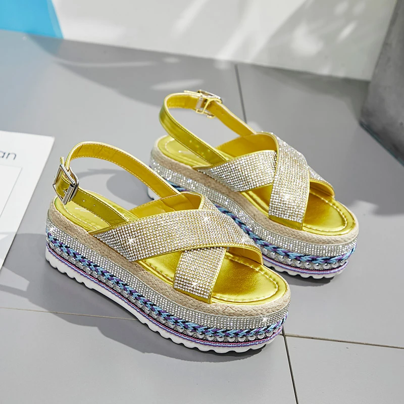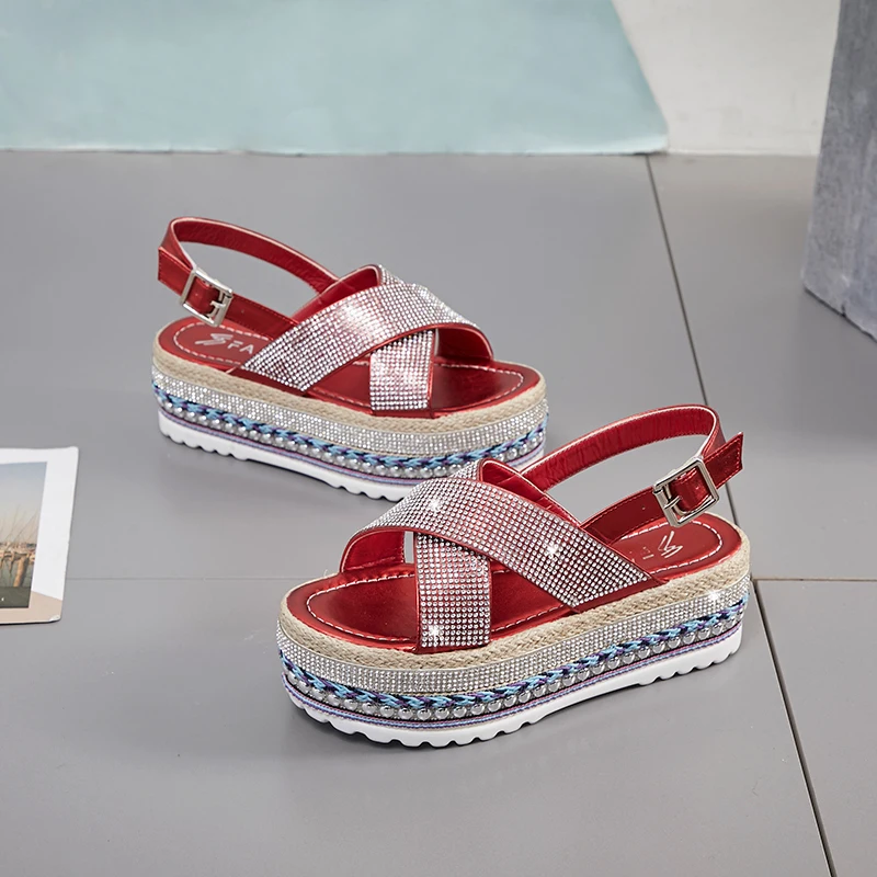 Сандалии LazySeal женские на платформе, пляжные босоножки с пряжками, плоская подошва, блестящая обувь, модель Лето 2020