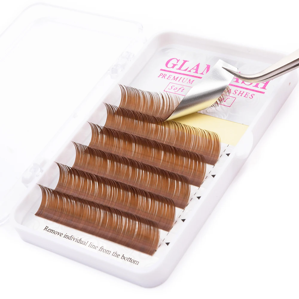 Накладные ресницы GLAMLASH Premium, коричневые, темно-коричневые ресницы для наращивания, Индивидуальные Накладные ресницы из искусственного норкового шелка для макияжа