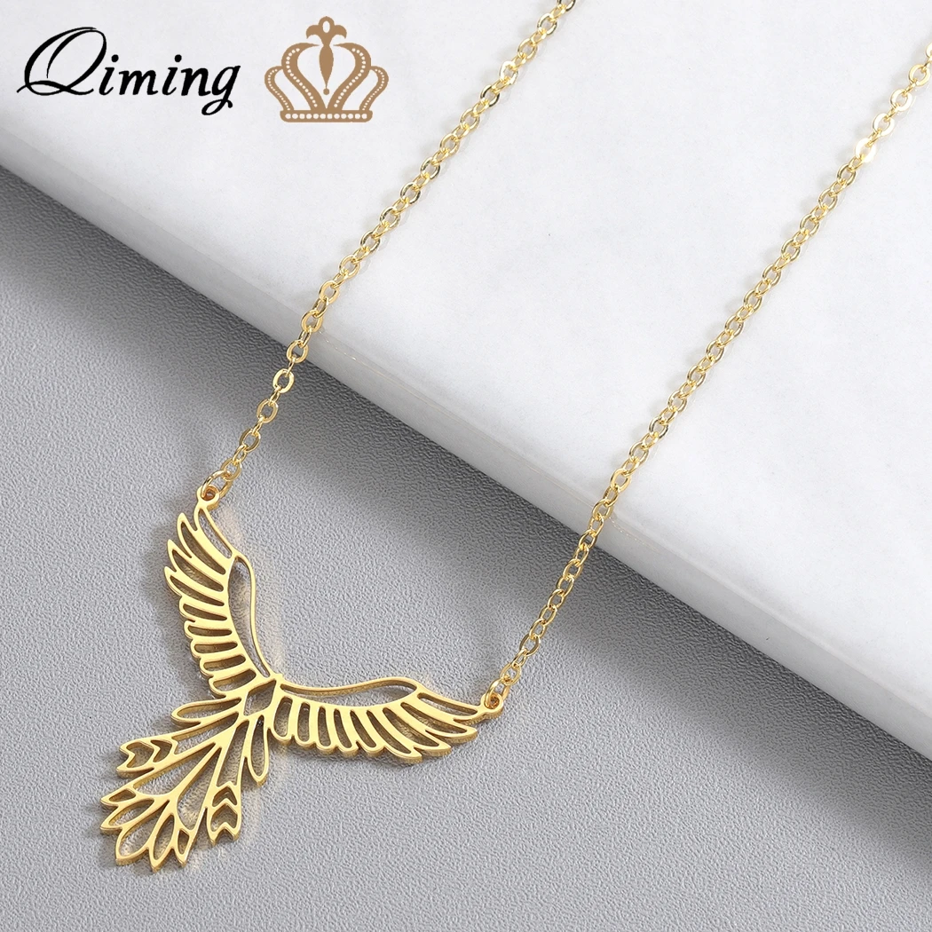 Женское Ожерелье QIMING из нержавеющей стали с подвеской в виде птицы