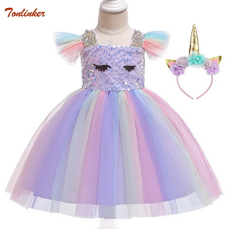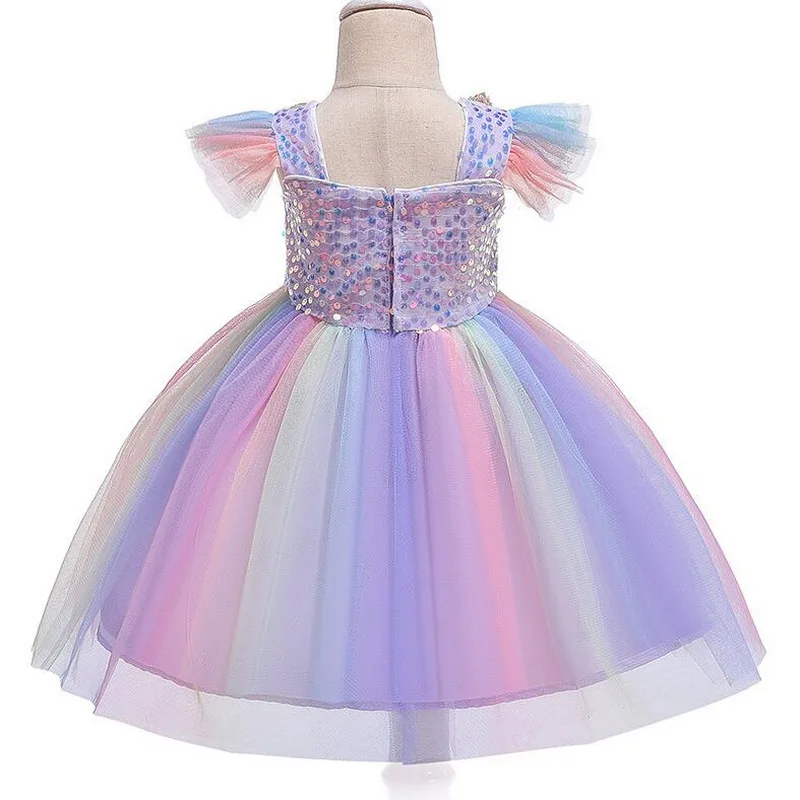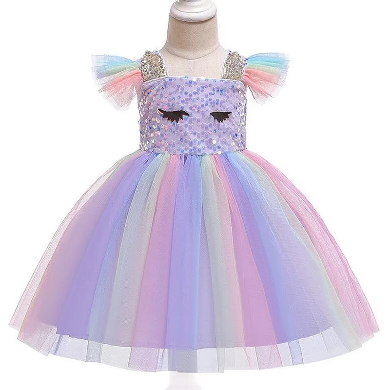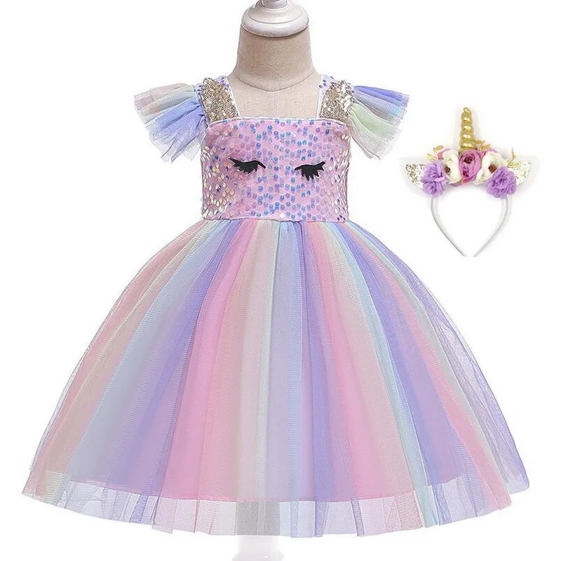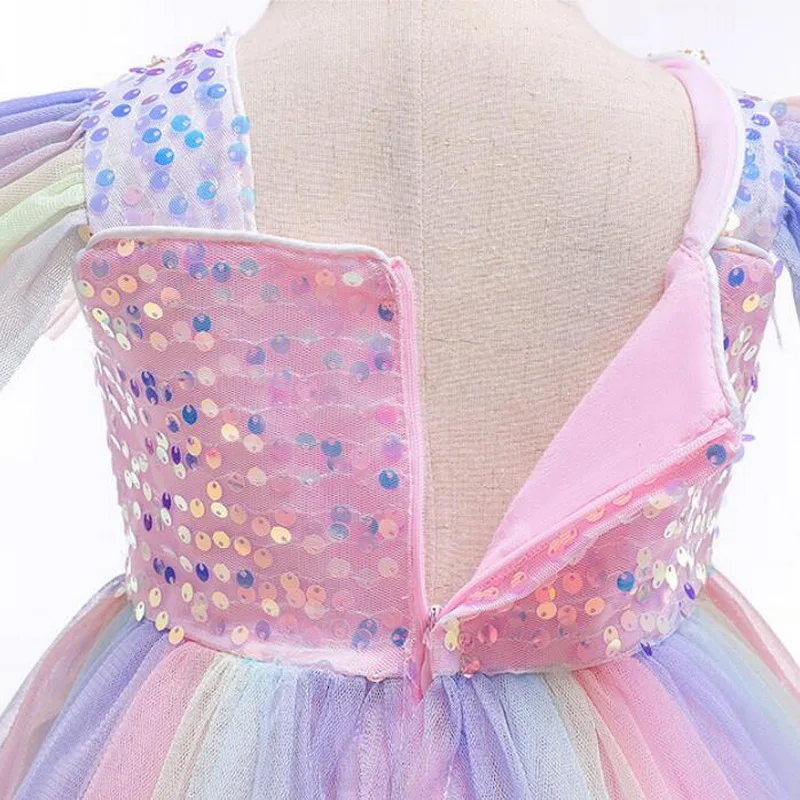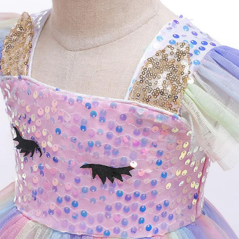 Платье для девочек на Хэллоуин, костюм единорога, необычные детские радужные платья-пачки с блестками для дня рождения, костюмы принцессы для косплея