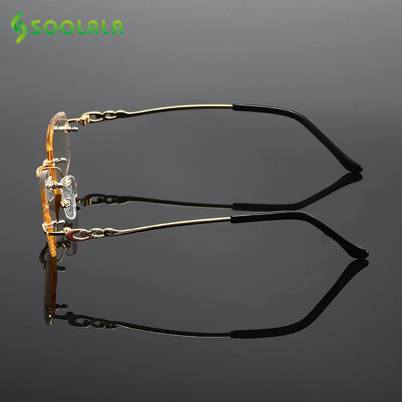 Очки для чтения SOOLALA Стразы с защитой от синего света, женские очки для чтения без оправы с алмазной резкой, мужские очки для дальнозоркости с золотым ридером