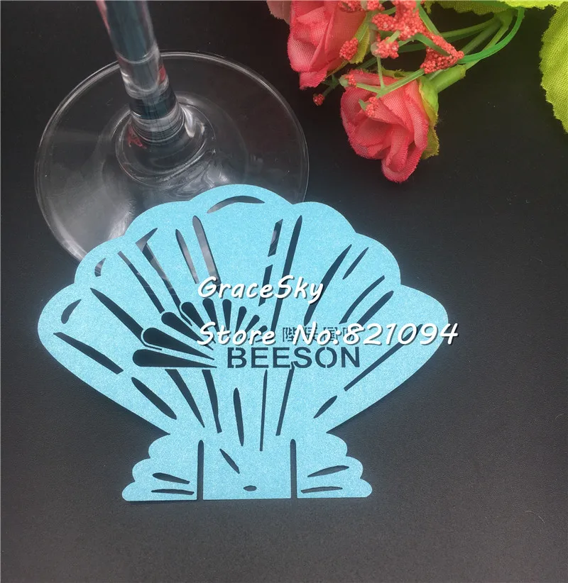 50 шт./лот маркеры в виде ракушки для стекла вина, карты на свадьбу, день рождения, имя, номер карты, для детского душа, украшения на день рождения