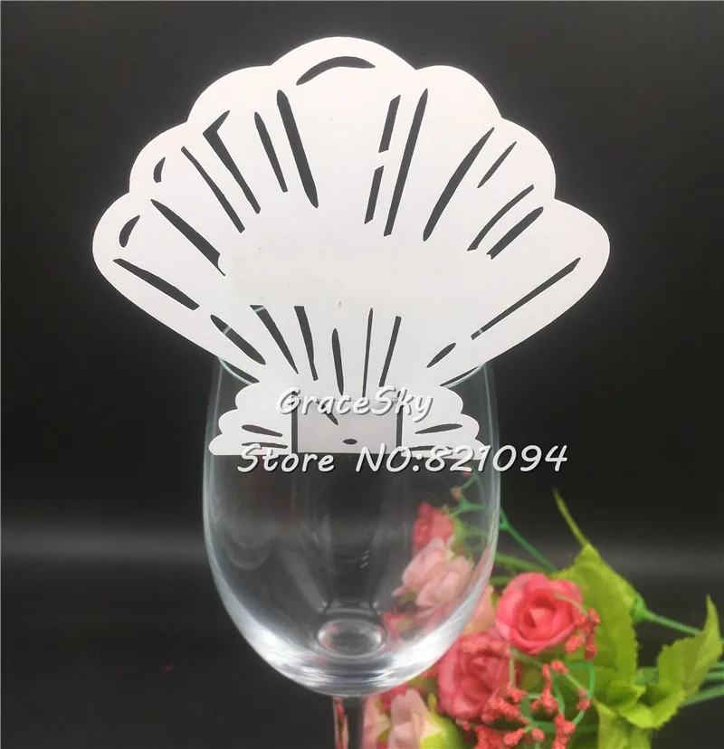 50 шт.лот маркеры в виде ракушки для стекла вина, карты на свадьбу, день рождения, имя, номер карты, для детского душа, украшения на день рождения