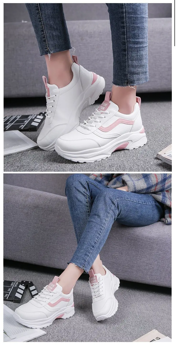 Женские кроссовки на танкетке, Белые Повседневные кроссовки на платформе, Размеры 35-40, весна 2019