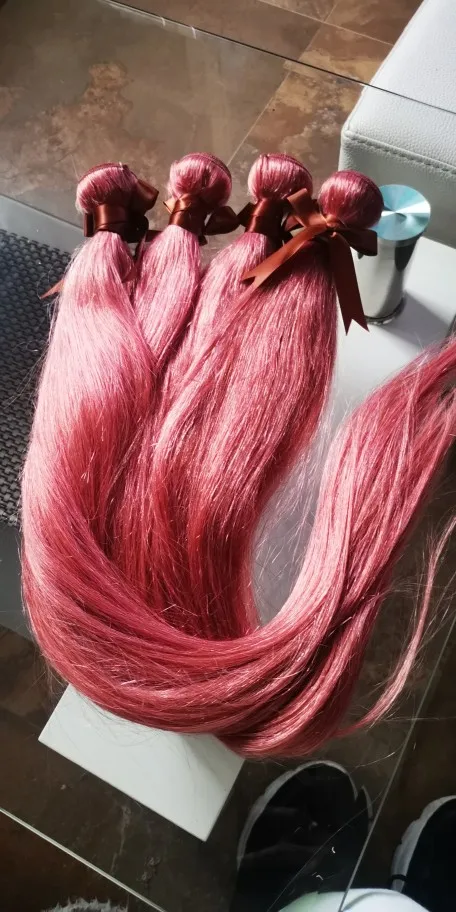 Гладкие бразильские прямые пучки волос, натуральные Реми розовые шелковистые прямые человеческие пряди сы, пряди для наращивания для черных женщин