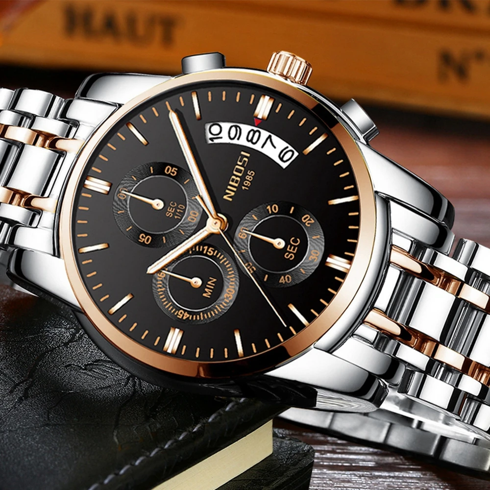 Часы наручные NIBOSI мужские из нержавеющей стали, роскошные брендо...