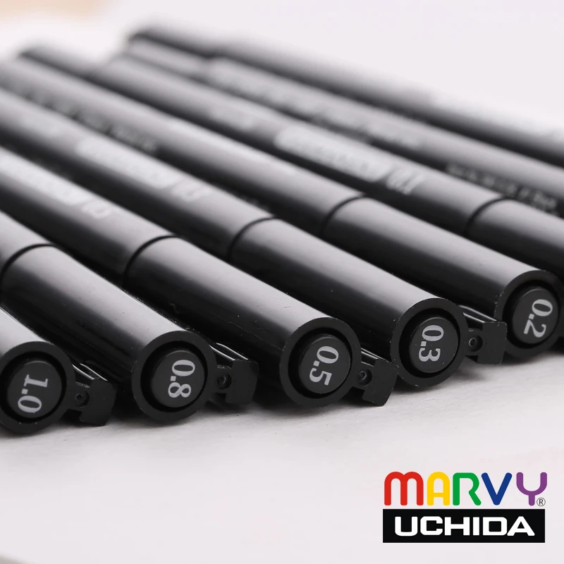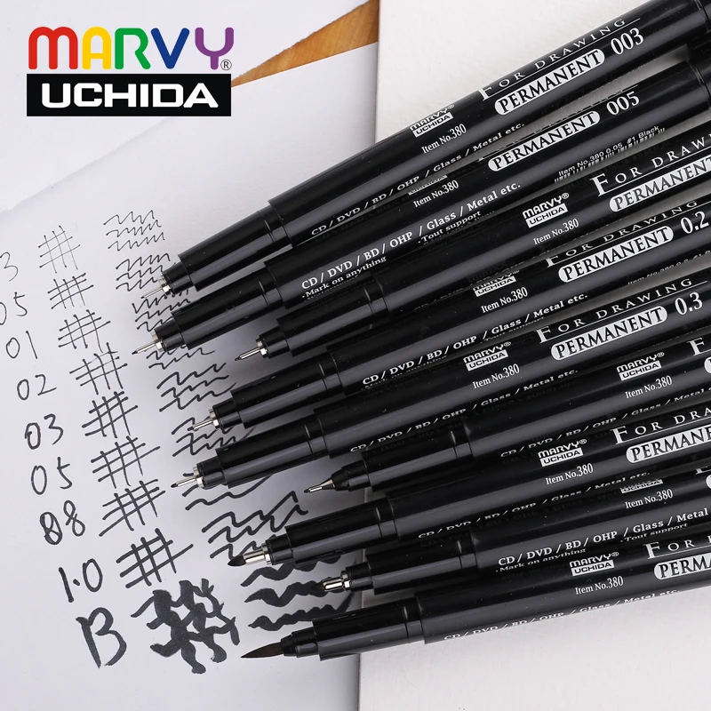 Маркеры Marvy 380, ручки 0030050.10.30.50.81.0набор линеров для рисования манги, водонепроницаемые игольчатые ручки для комиксов