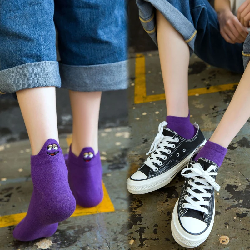 Хлопчатобумажные носки Kawaii с вышивкой, женские носки, модные, короткие, дышащие, уличные, хип-хоп
