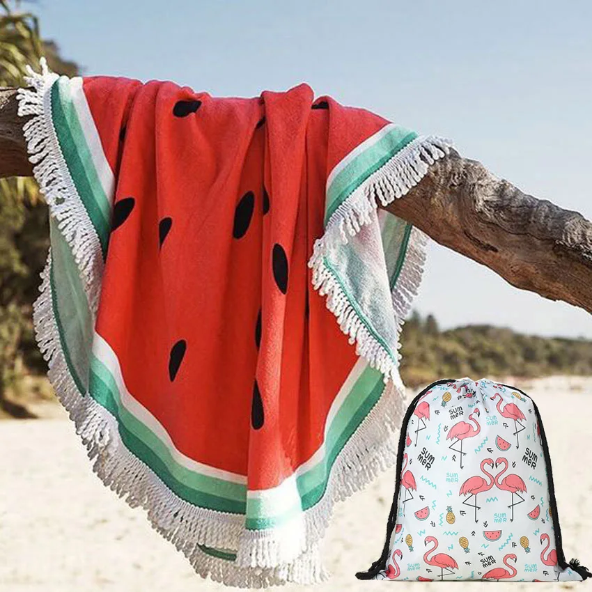 Летние круглые пляжные полотенца с арбузами и сумкой для хранения на шнурке, спортивные полотенца для ванны и душа, коврик для йоги с кисточками, toalla playa