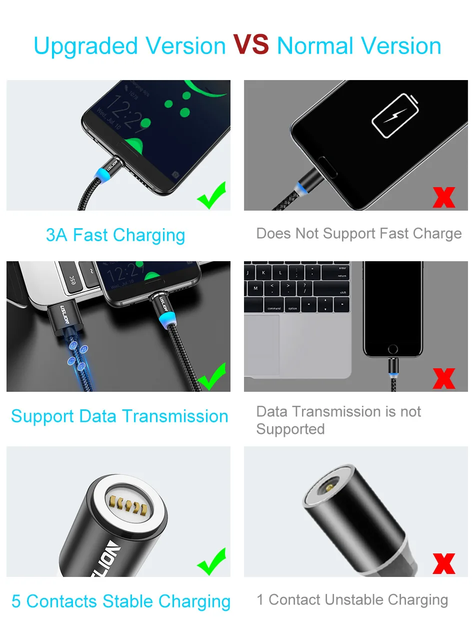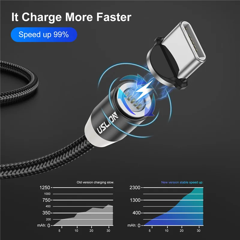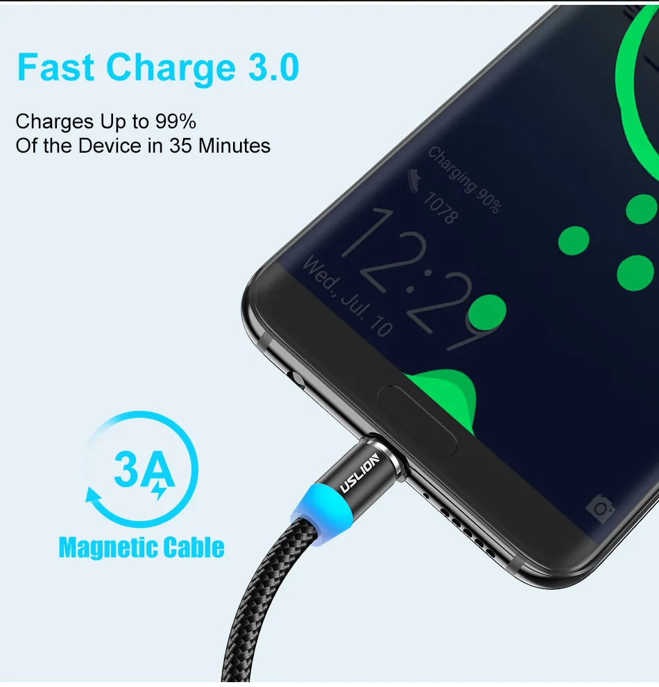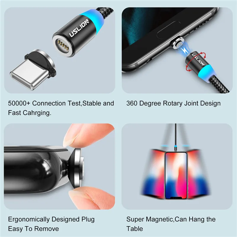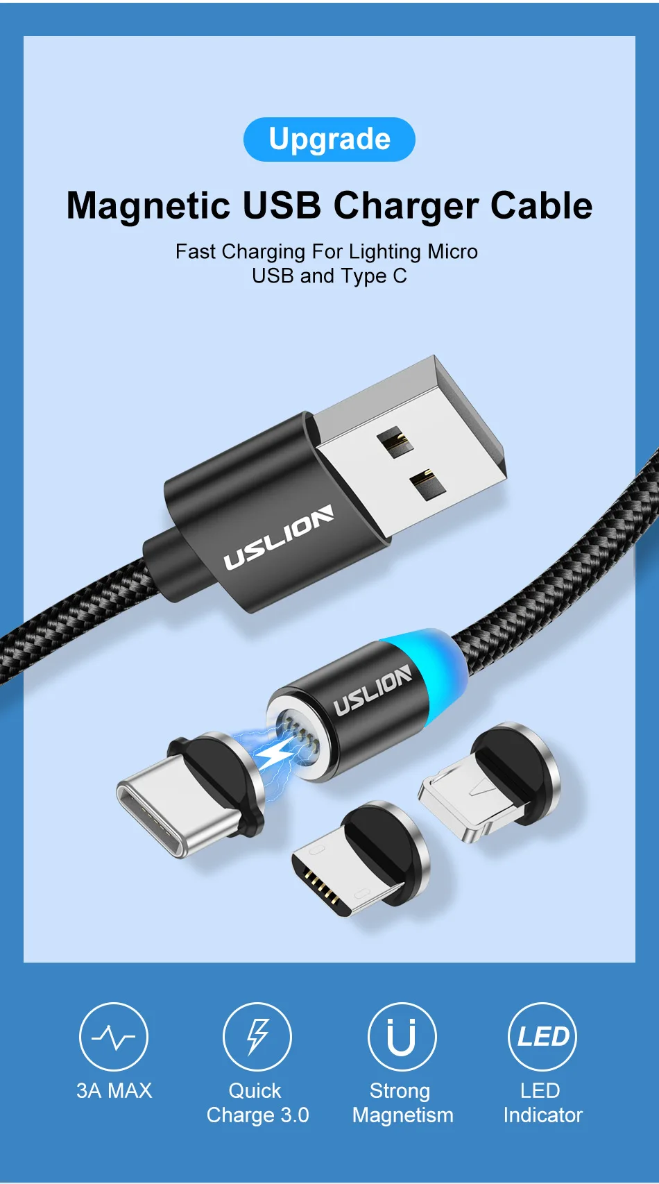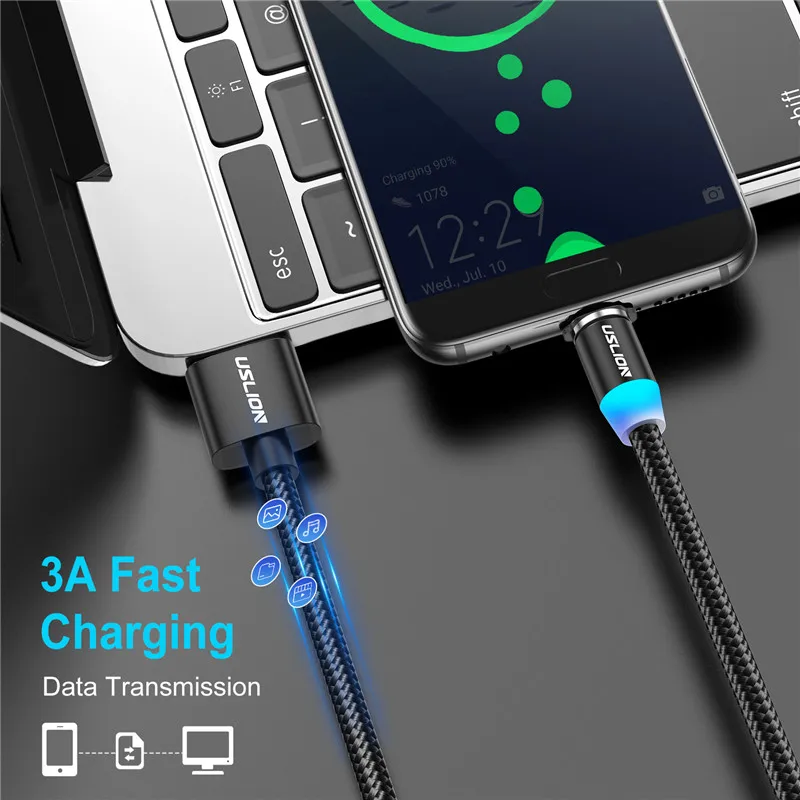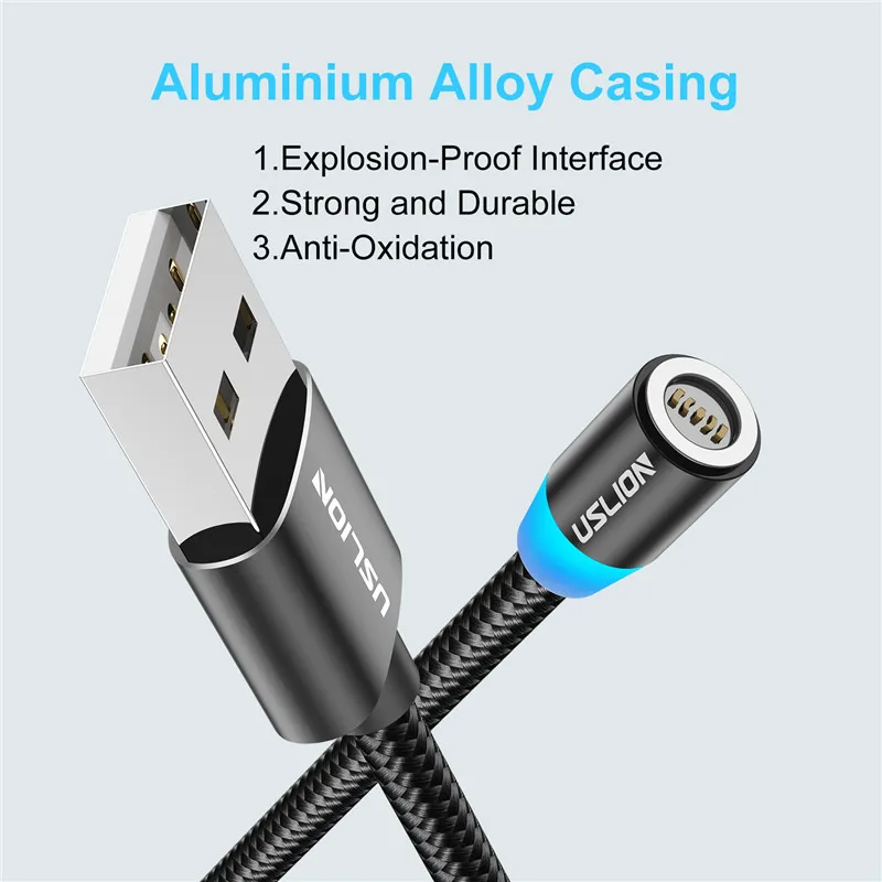 Магнитный кабель Uslion USB-LightningType-CMicro-USB, нейлоновый, 1м2м, в ассортименте.