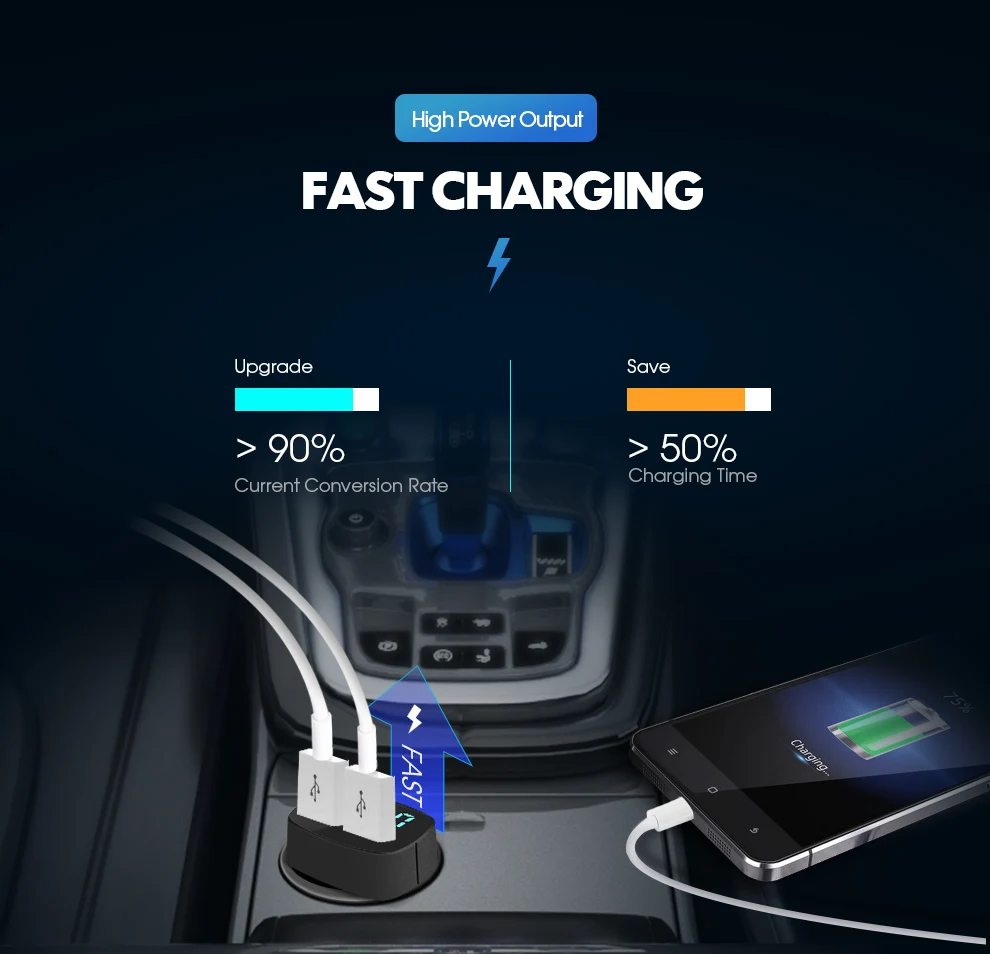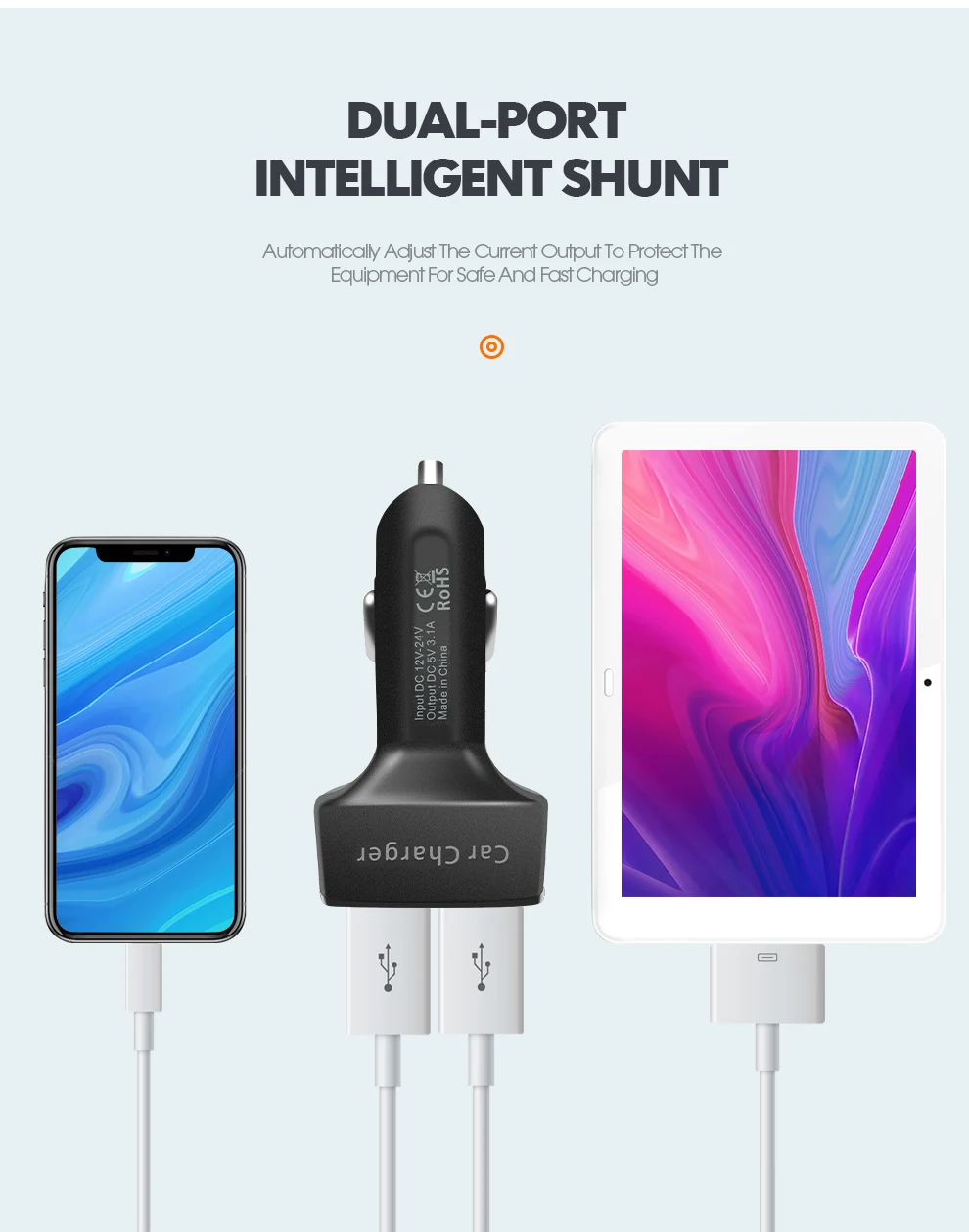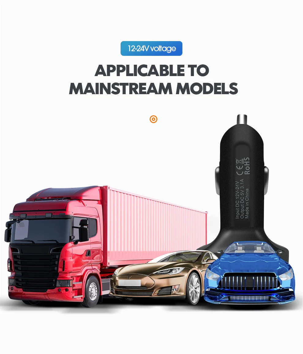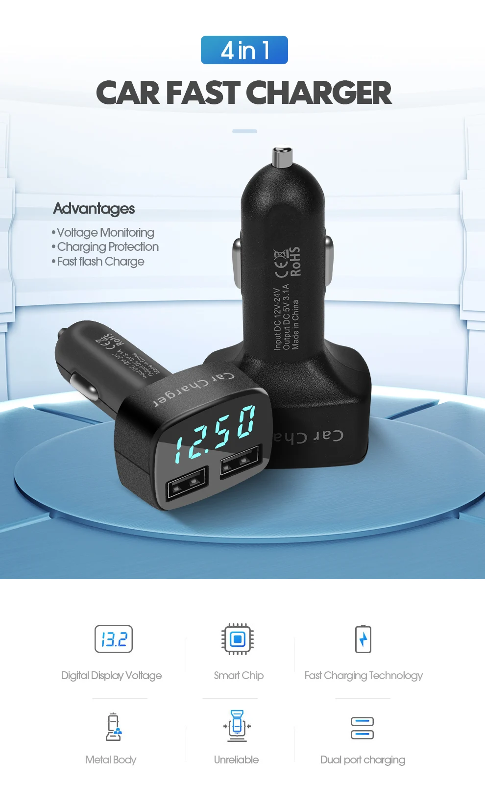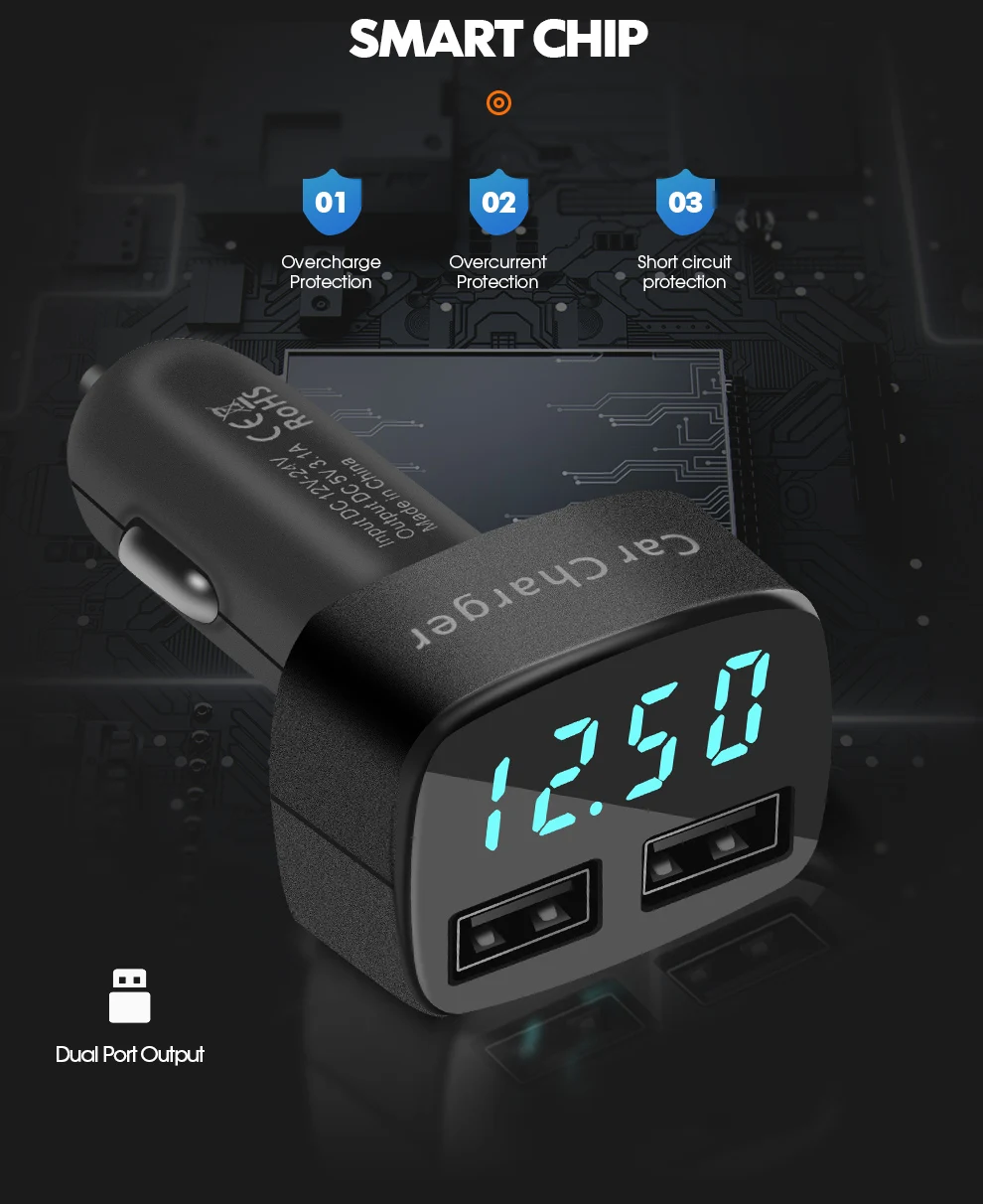 Автомобильное зарядное устройство, двойной DC5V 3.1A USB с цифровым дисплеем