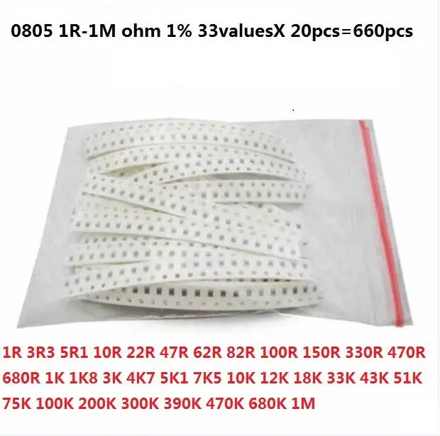 0805 33 значения x 20 штук = 0805 1% 1R-1M (33 Ценности * 20 штук = 660 шт.)