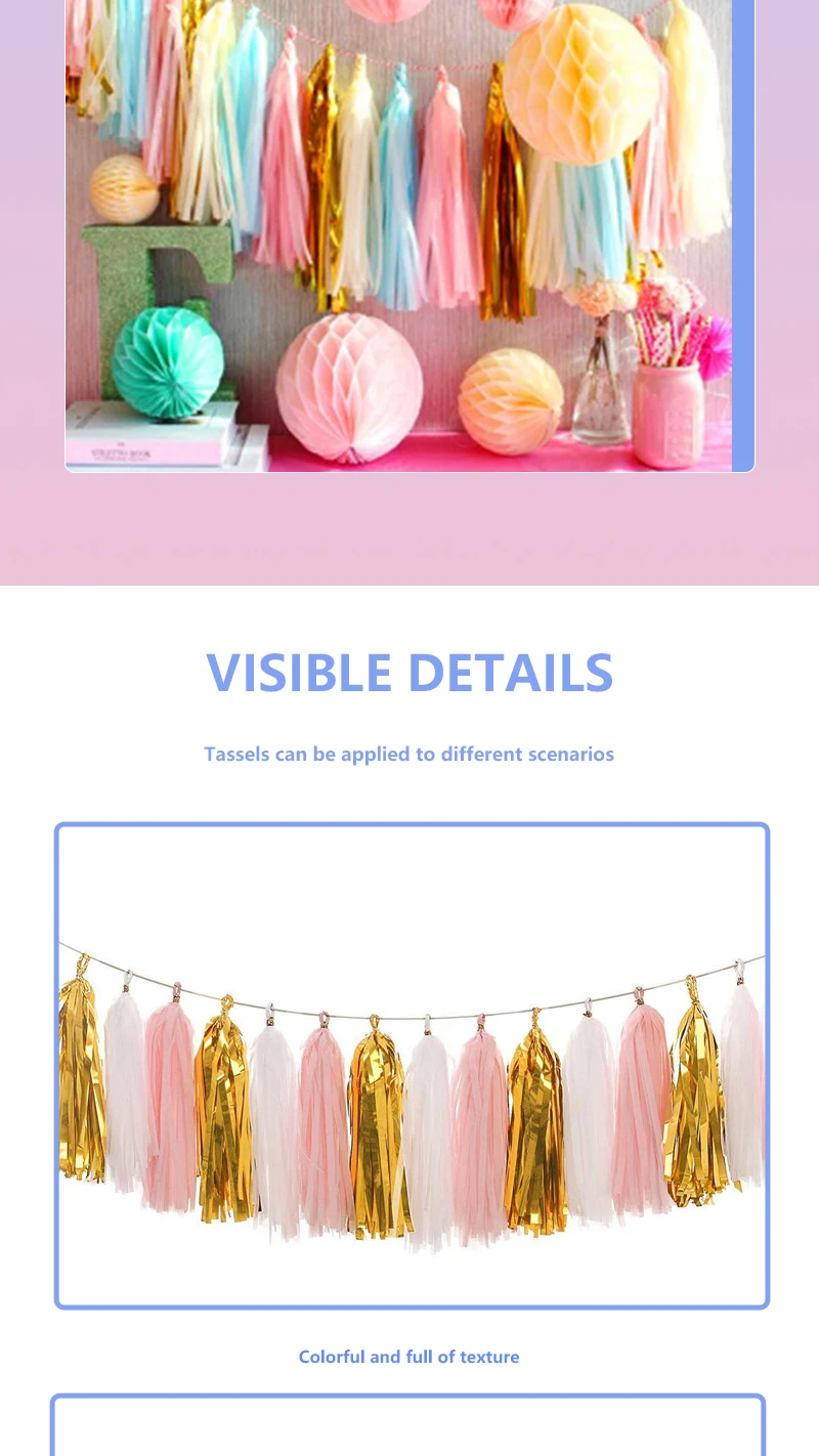 20 штук розовое золото DIY папиросной бумаги гирлянды с кисточками ...