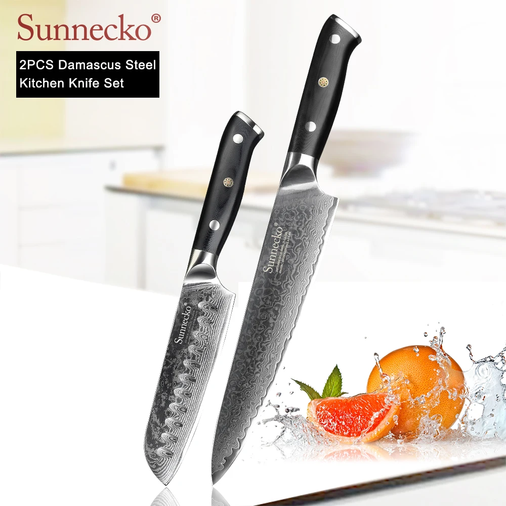 Нож шеф-повара SUNNECKO, 8 Дюймов, 5 дюймов, дамасская сталь, японская сталь VG10, Ручка G10, инструменты для резки мяса, набор из 2 кухонных ножей