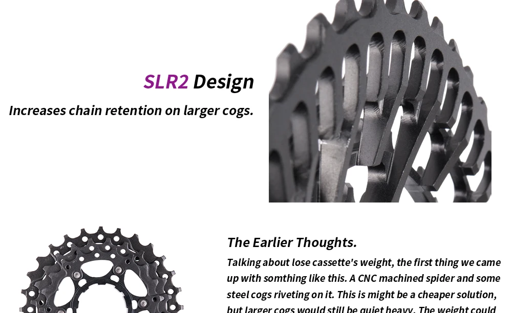 Выпуклая конструкция совместима с 10-скоростной втулкойCNC паук и стальные cogsКонструкция SLR2 увеличивает удержание цепи на больших винтахЗвездочки из стали и алюминия
