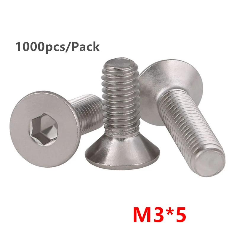 1000 шт. M3 * 5 плоский винт DIN7991 Шестигранная розетка плоская потайная головка болт SUS304 болты из нержавеющей стали M3X5mm