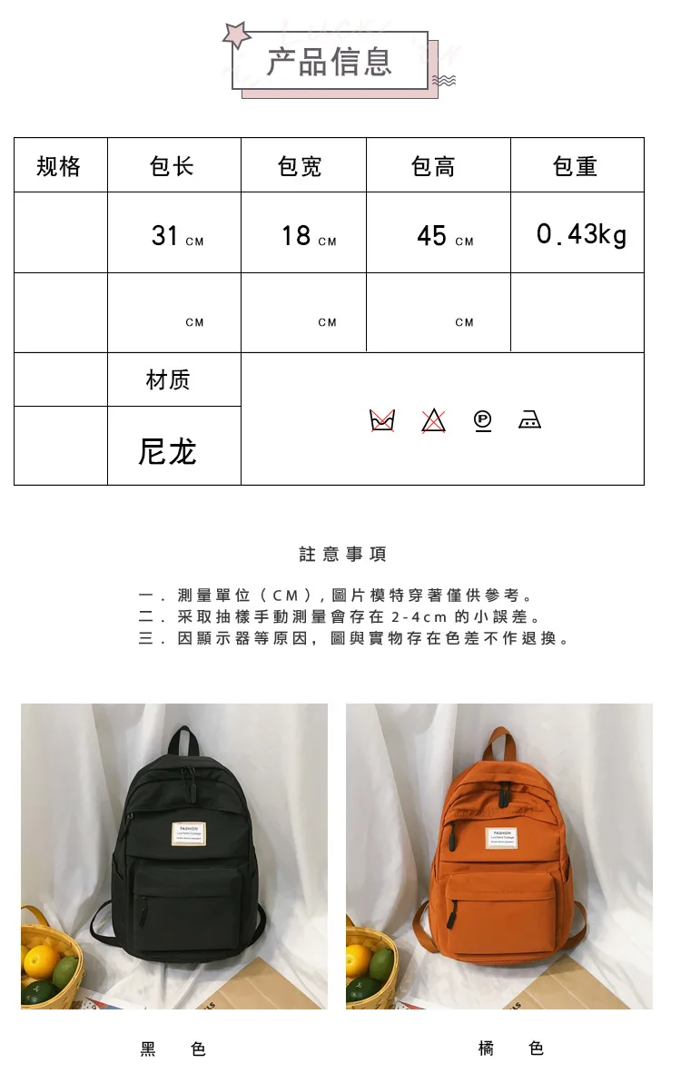 Повседневный однотонный нейлоновый женский рюкзак, школьный ранец для студентов, сумки на плечо для девочек-подростков