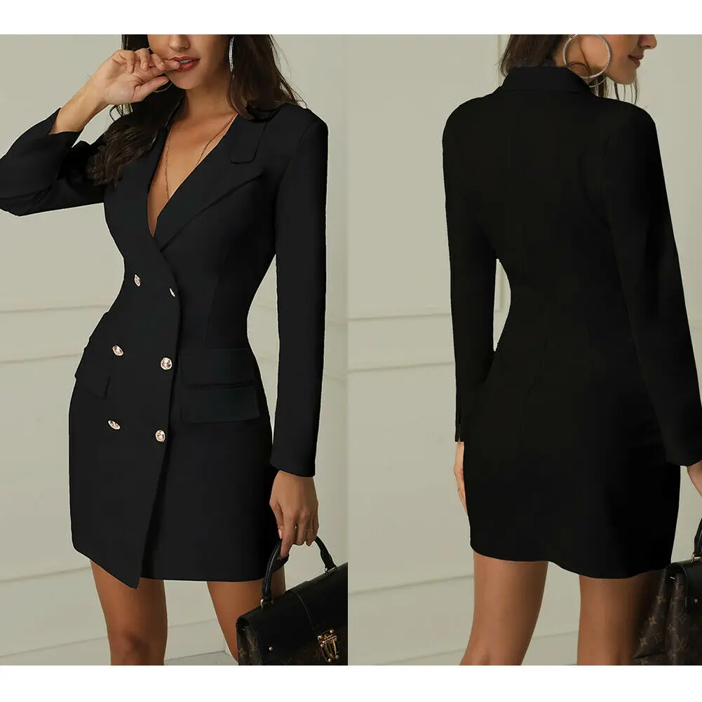 Платье женское приталенное, Модный повседневный двубортный Блейзер, однотонная формальная верхняя одежда с отложным воротником и V-образным вырезом, размера плюс